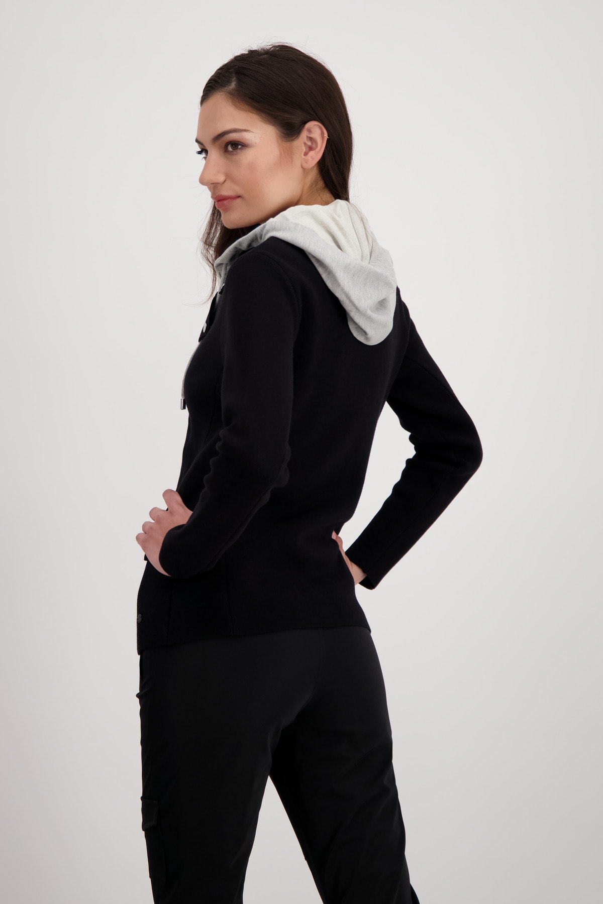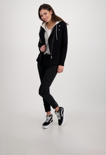 На сайте указаны российские размеры. Вязаный блейзер со съемной вставкой от пота. Классная вставка от пота с капюшоном и молниями уникальным образом украшает ваш образ и без проблем снимается. Аутентичный образ с ложными карманами с клапанами и слегка диагональной двусторонней молнией стильно и по-спортивному дополнен декоративными пуговицами на воротнике с лацканами. Рост модели 179 см.