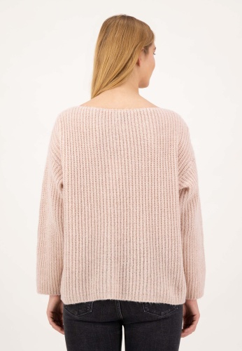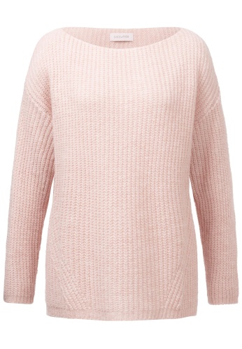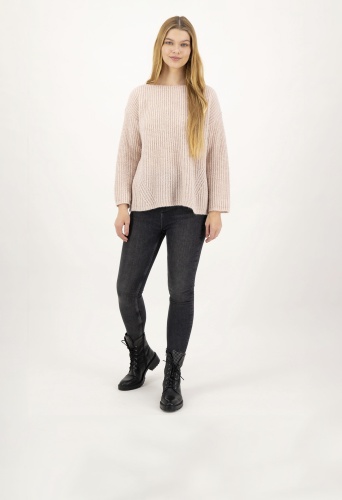 На сайте указаны российские размеры. Повседневный вязаный свитер свободного покроя. Сочетание высококачественных материалов делает свитер приятным и мягким в носке. Благодаря тонкой и асимметричной структуре вязания свитер с круглым вырезом станет повседневным комбинированным элементом для непринужденного образа. Рост модели: 177 см. Измерения для 44 размера : Окружность груди: 62 см Бедра: 58 см Длина по спинке: 58 см. Длина рукава: 60 см.