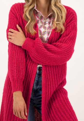 На сайте указаны российские размеры. Длинный объёмный кардиган с пышными рукавами. В сочетании с красивой блузкой , крутым свитером или повседневной толстовкой — эта модная вещь украсит любой образ и согреет и согреет вас. Грубая трикотажная структура особенно подчеркивается объемными рукавами. Благодаря более длинному повседневному крою куртка также идеально сочетается с платьем до колен. Рост модели: 177 см. Измерения для 44 размера: Окружность груди: 54 см Ширина подола: 60 см Длина по спинке: 91 см. Длина рукава: 68 см.