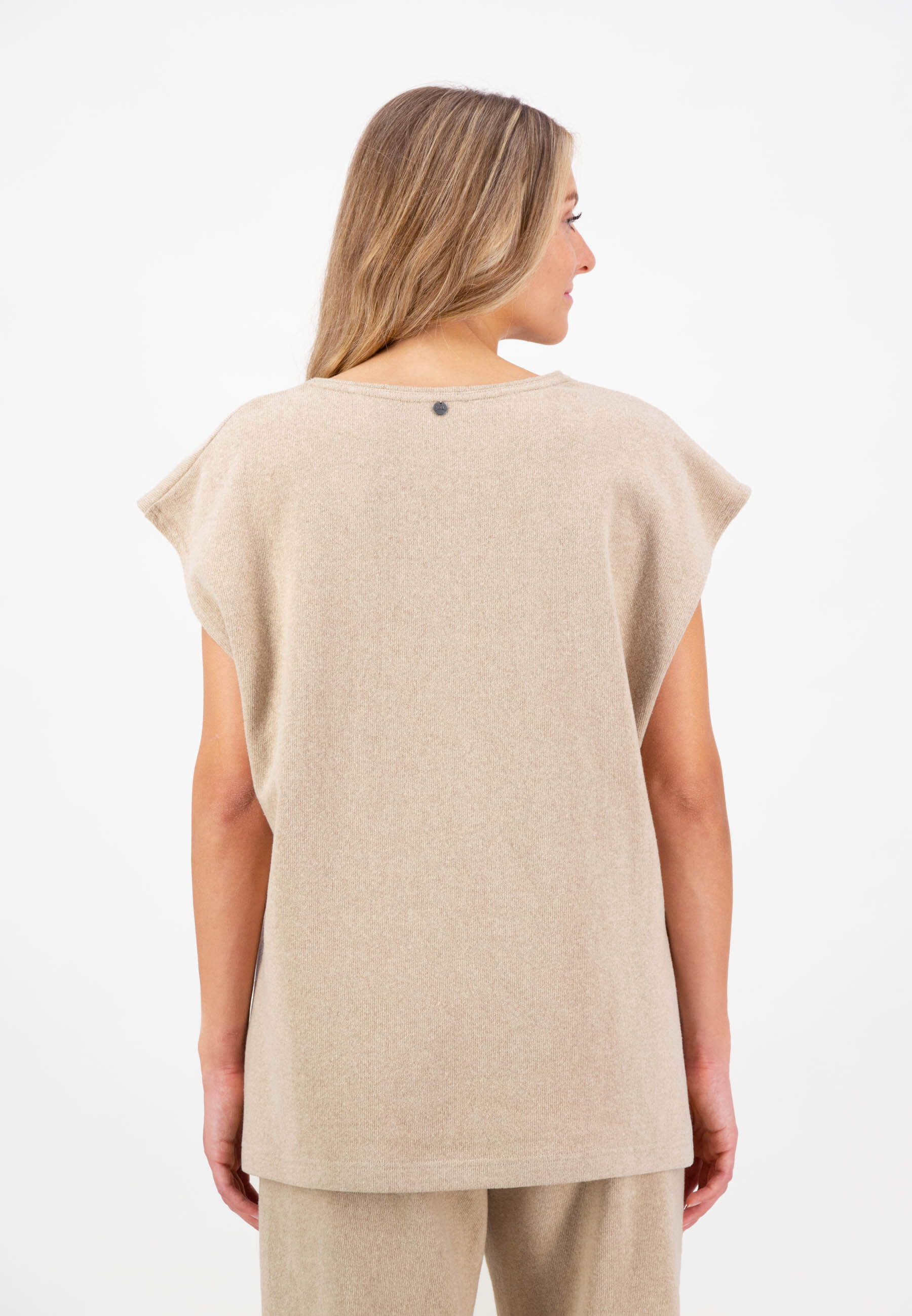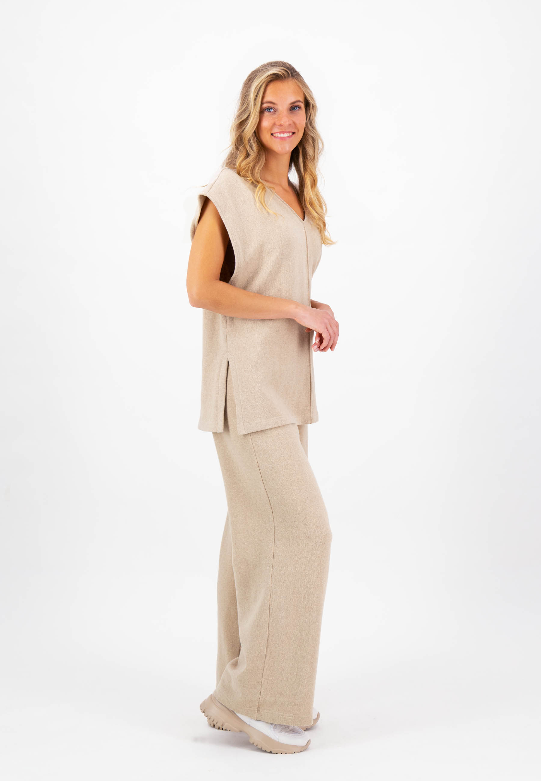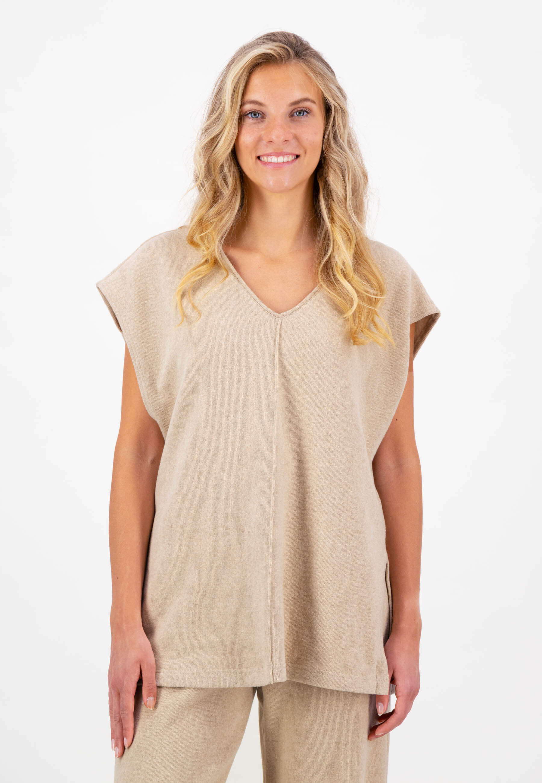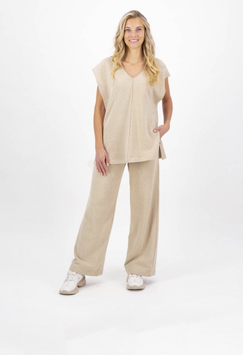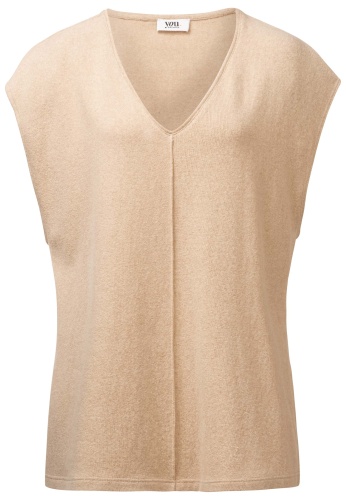 На сайте указаны российские размеры. Невероятно мягкий вязаный джемпер тонкой вязки чистого бежевого цвета. Свободный крой оверсайз, V-образный вырез и глубокие проймы придают комбинезону легкий, струящийся вид, который усиливается боковыми разрезами и тонкой окантовкой спереди. Рост модели 177 см Измерения для 44 размера: Окружность груди: 119 см Ширина подола: 119 см Длина по спинке: 68 см