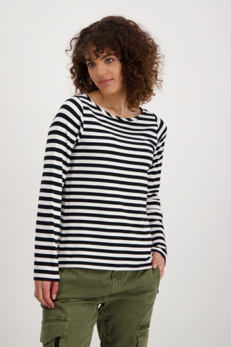 На сайте указаны российские размеры. Базовая полосатая рубашка с вырезом «лодочка». Сплошной полосатый узор здесь вступает в свои права и может использоваться повсеместно. Струящаяся вискоза в сочетании с модалом и стрейч обеспечивает удобную посадку. Модель ростом 174 см. Длина спины 44 размера составляет 60 см.