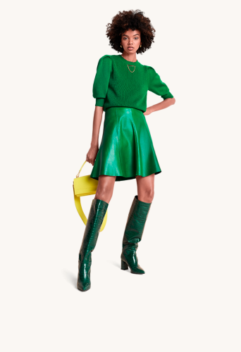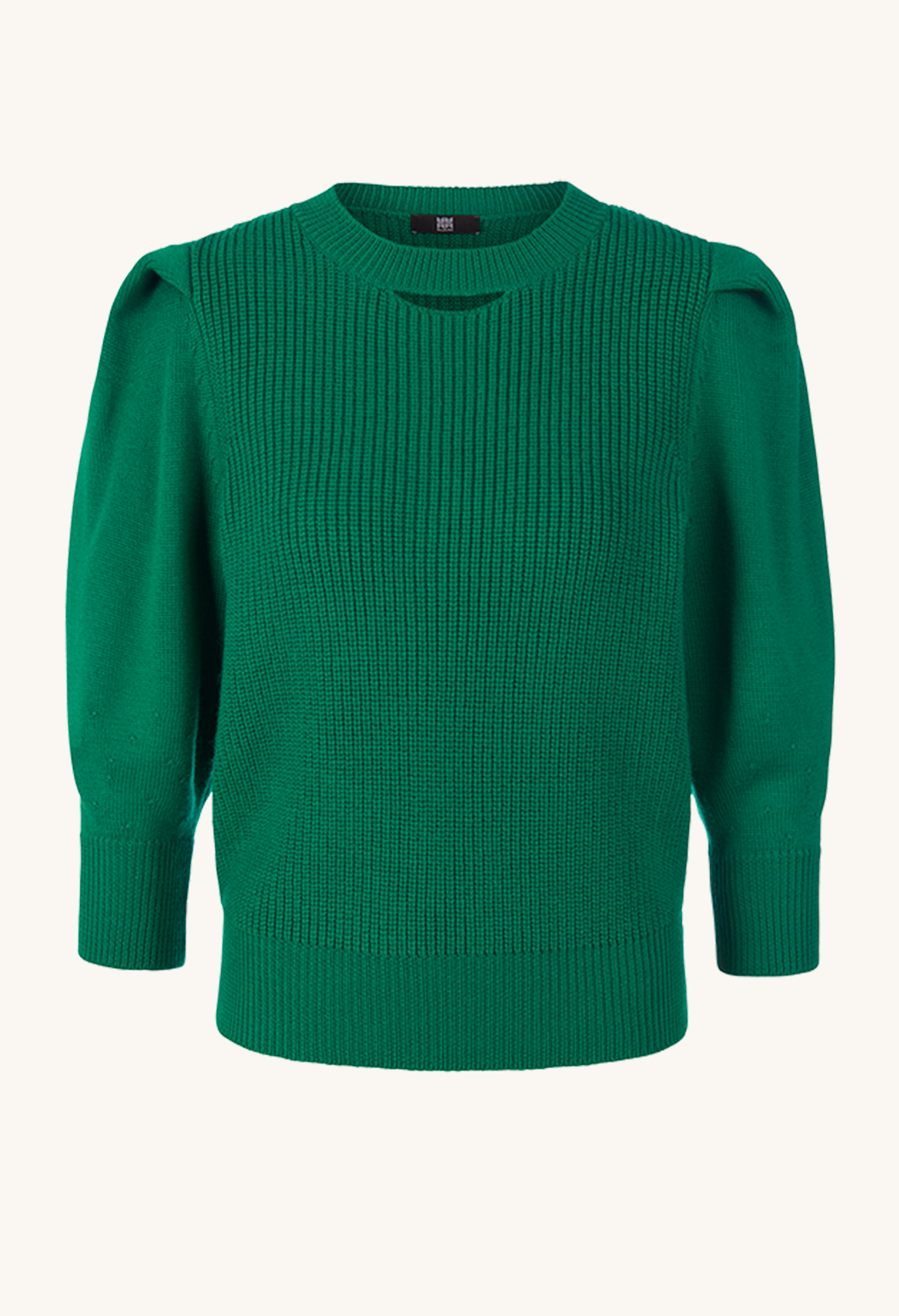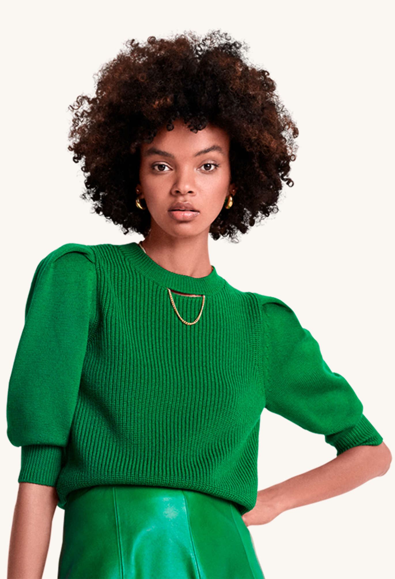На сайте указаны российские размеры. Джемпер свободного кроя с модными вырезами и пышными рукавами. Несмотря на то, что фасон этого свитера остается тонким, он также привлекает внимание. А блягодаря экстратонкой мериносовой шерсти вы получите отличную основу для многих стилей. Рост модели 180 см.
