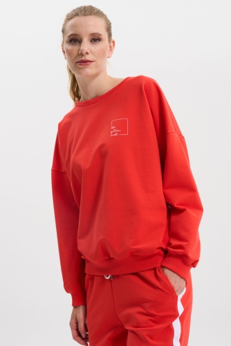На сайте указаны российские размеры. Свободный джемпер с маленьким квадратным принтом "Золотой берег". Длинный рукав с манжетами.