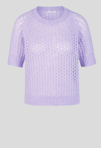Легкий пуловер с короткими рукавами из сверхмягкой полушерстяной пряжи всегда будет отличным компаньоном, будь то прямо на теле или в качестве накидки. Изысканная ажурная вязка и модные рукава реглан придают базовый повседневный шарм.