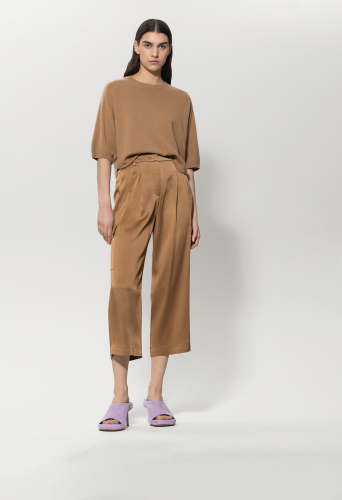 Трикотажный джемпер с рукавами средней длины из роскошного смесового кашемира. Изысканный дизайн швов и закругленный низ придают этому джемперу элегантный и эффектный вид.