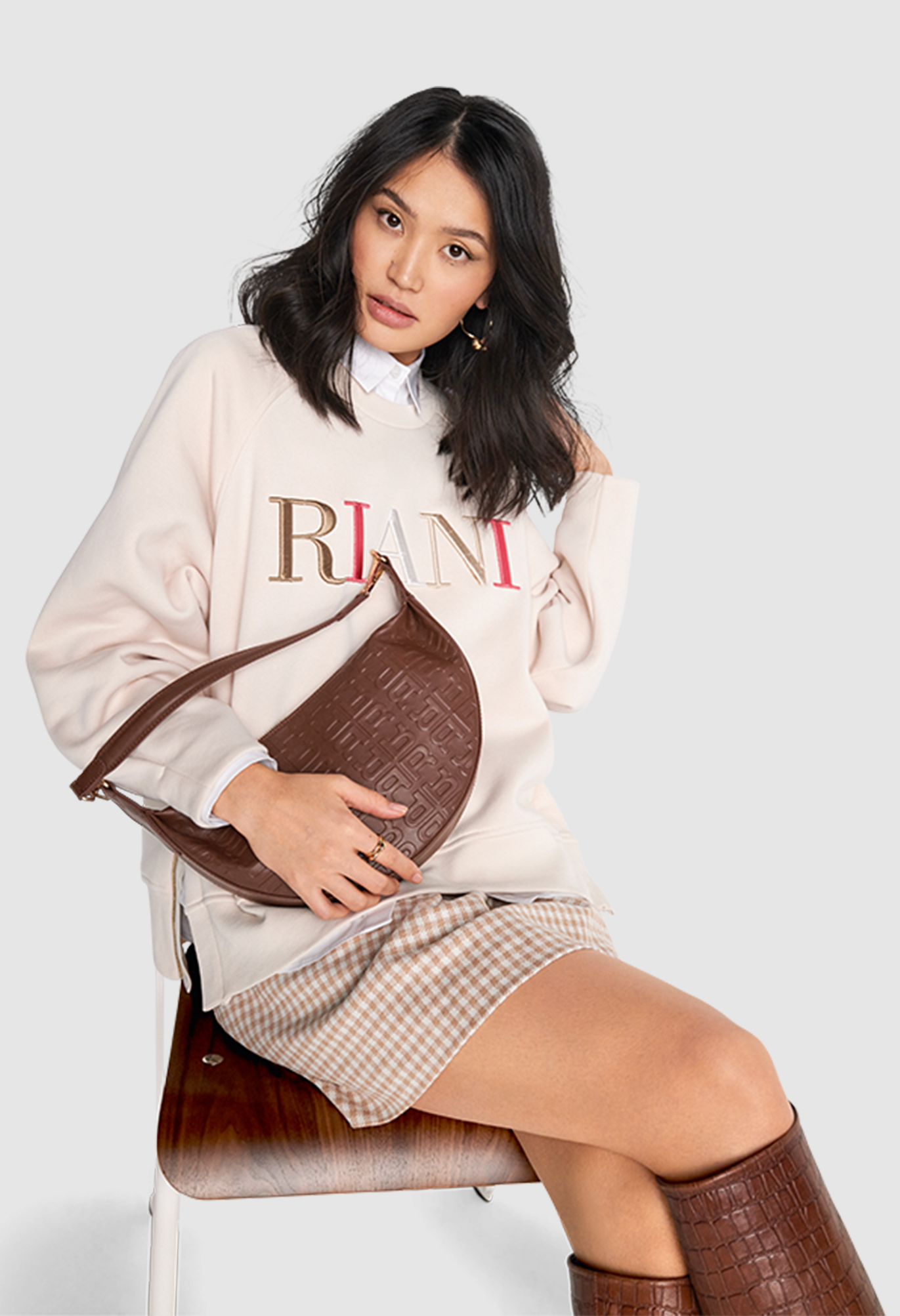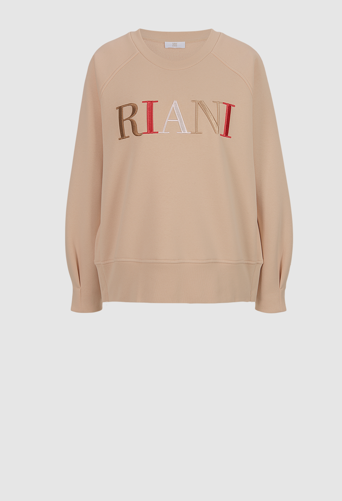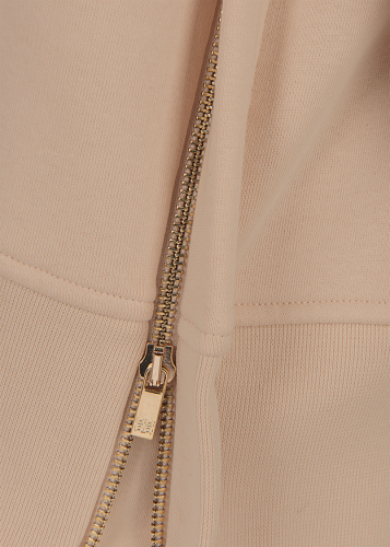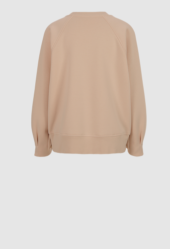 Толстовка с повседневным кроем и рукавами предлагает достаточно места, чтобы уютно устроиться и расслабиться. Круглый вырез горловины, широкие манжеты с вшитыми складками и широкий подол с двумя боковыми молниями придают образу особый шарм.