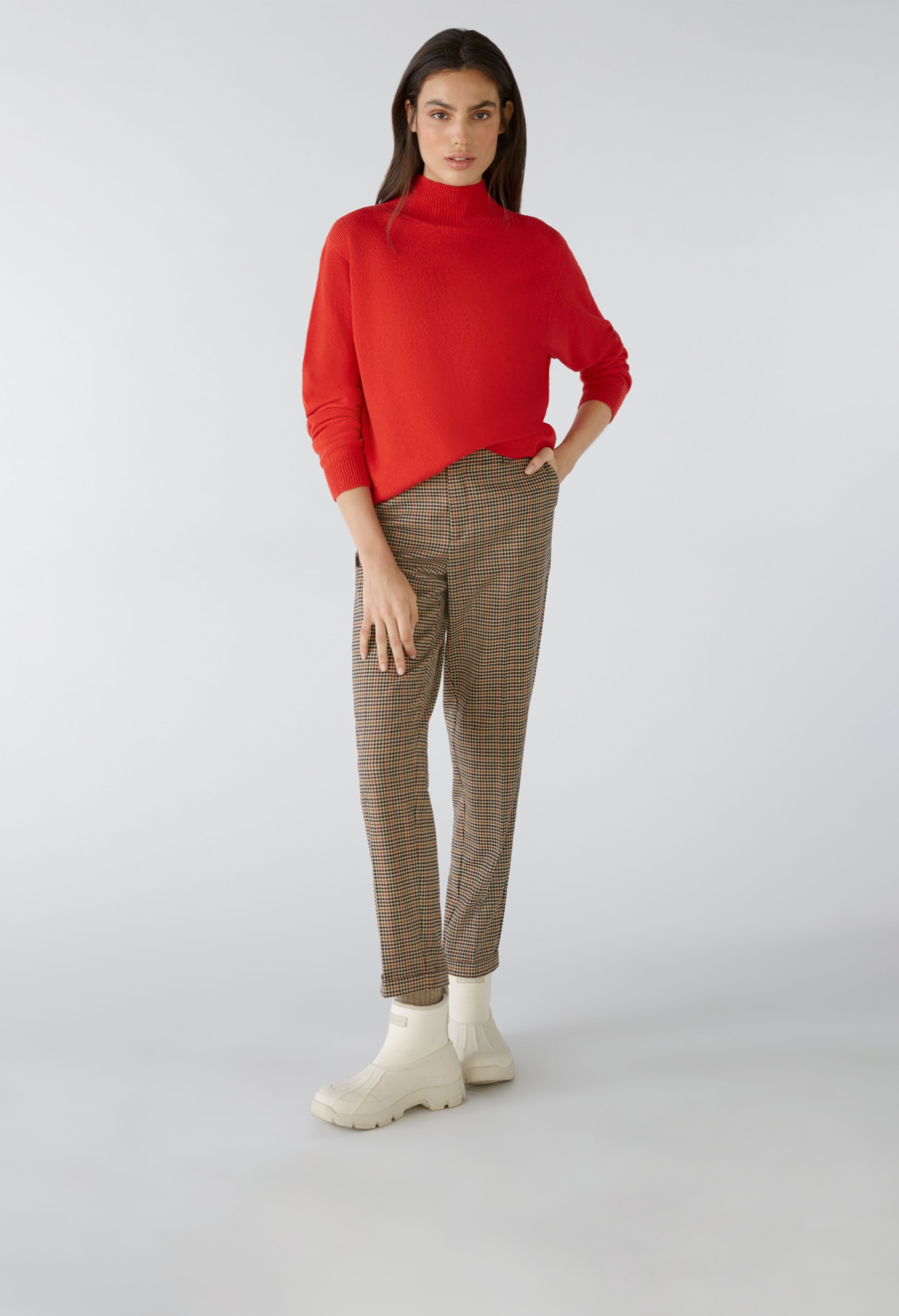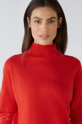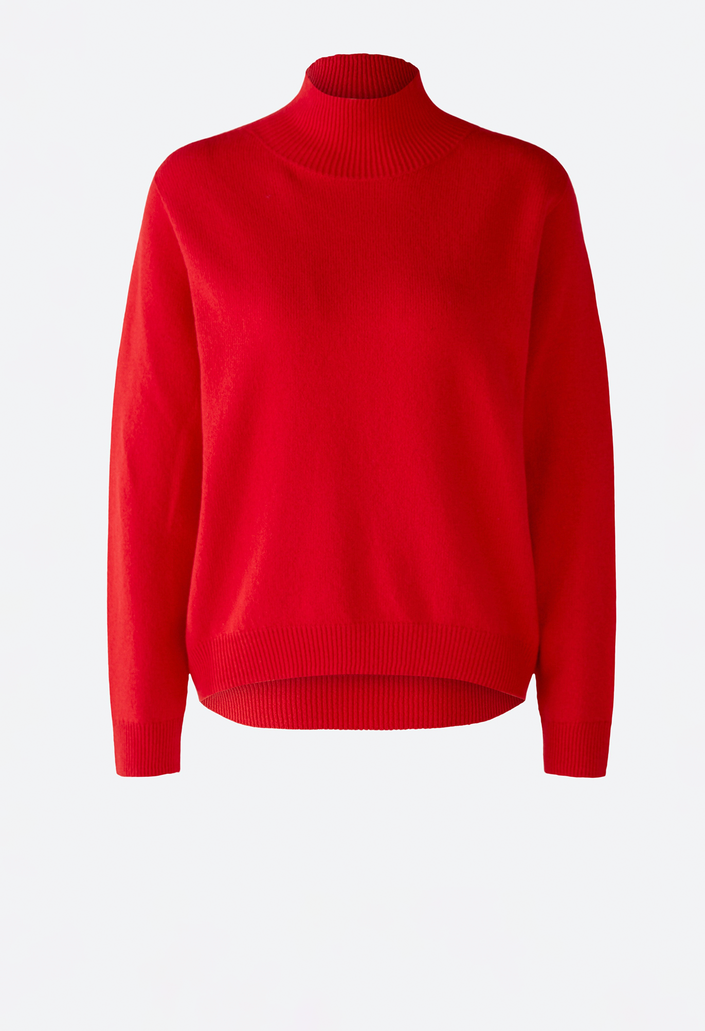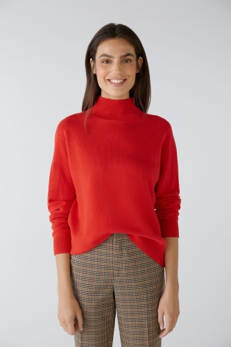 Бесшовный свитер из модальной смесь, гладкой вязки. Повседневный крой, с закругленным краем спереди. Воротник-стойка, связанный резинкой. Специальная пройма, прямой покрой, длинные рукава. Низ и манжеты ребристой вязки, усилены эластичной нитью. Длина для размера 42 - 61 см.