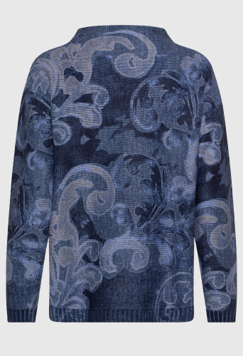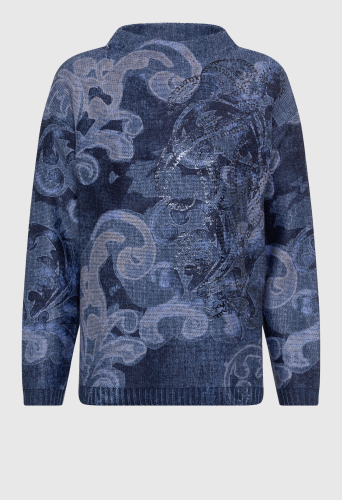 Свитер свободного кроя эффектен благодаря уникальному дизайну по всей поверхности и красивым синим оттенком. Накладной серебристый металлик добавляет достаточное количество хлопка для комфорта и воздухопроницаемости. Модель выполнена в современном крое, который свободно и непринужденно облегает тело.