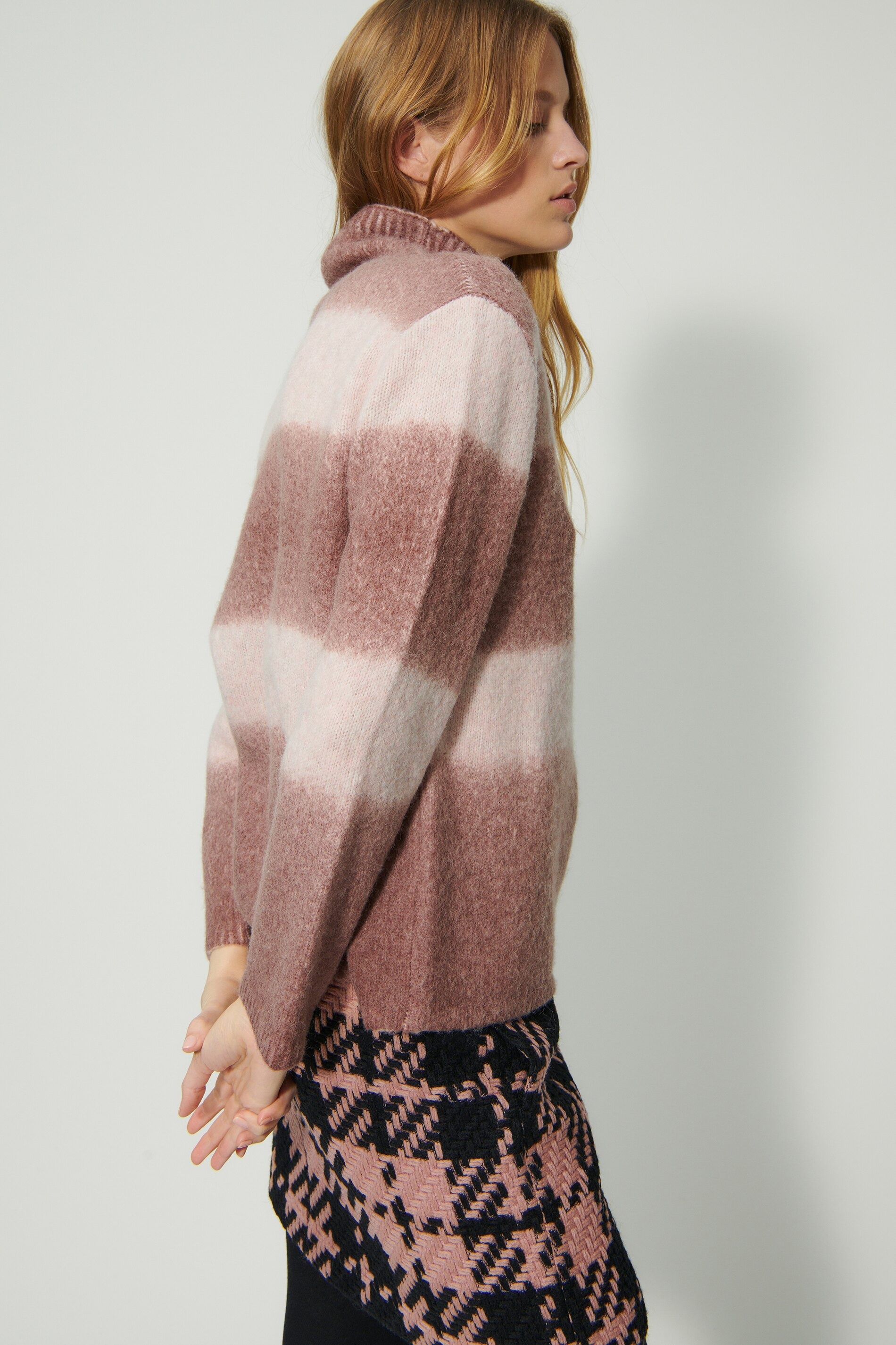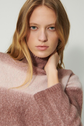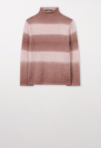 Вязаный пуловер с имитацией водолазки и полосатым узором. Высококачественная итальянская смесь шерсти с меланжевым эффектом подчеркивает приятный характер этого пуловера.