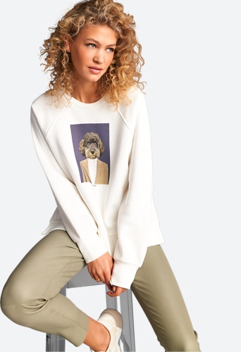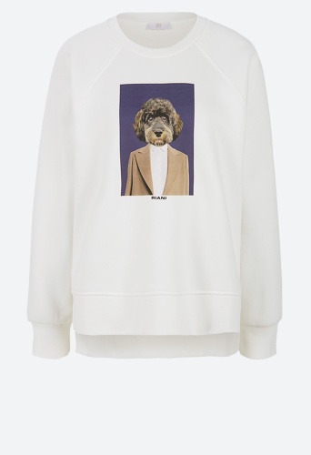 Базовая модель с круглым вырезом, манжетами и начесом из материала толстовки выполнена в классическом стиле. Рукава реглан. Вдохновением для создания крутого принта послужила наша служебная собака Симба, которая является частью семьи RIANI с 2020 года.