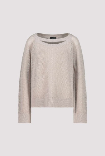 Этот свитер из высококачественной смеси хлопка впечатляет блестящим эффектом люрекса и модным вырезом под горло. Ажурный узор. Регулярная посадка. Ребристый круглый вырез. Длинные рукава реглан. Ребристые манжеты и подол. Длина 44 размера 56 см.