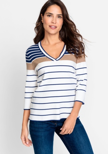 Классический джемпер с рельефной вязкой по всей поверхности и разнообразным сочетанием спортивных полосок. Мягкий и легкий для кожи благодаря комфортной полунатуральной вискозе. Модель Henny имеет прямой крой и слегка прилегает к телу.
