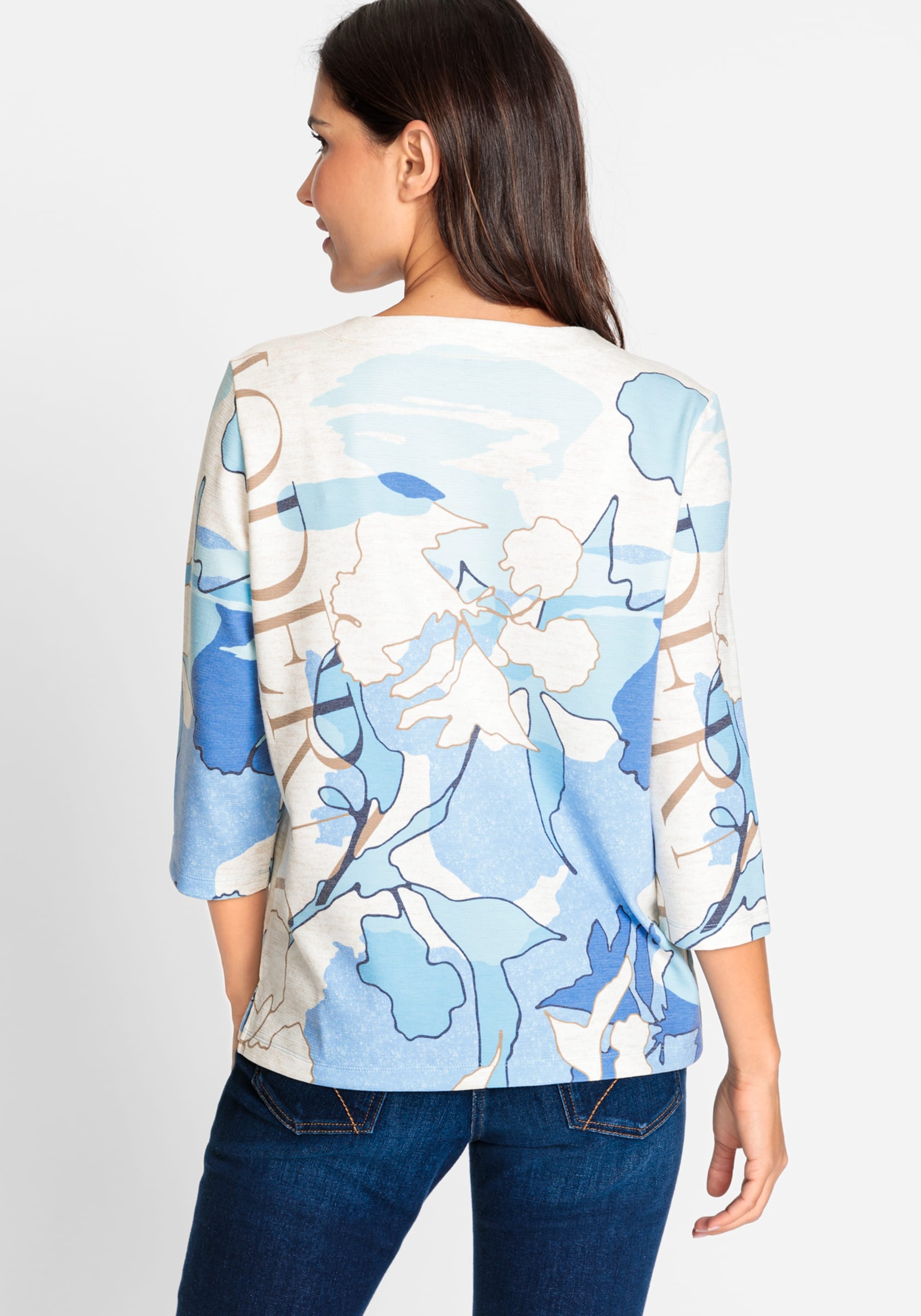 Супермягкий джемпер сочетает в себе абстрактный принт в спокойных оттенках синего с элементами дизайна нейтрального типографского принта. Имеет круглый вырез горловины и разрезы по бокам внизу. Модель Henny имеет прямой крой и слегка прилегает к телу.