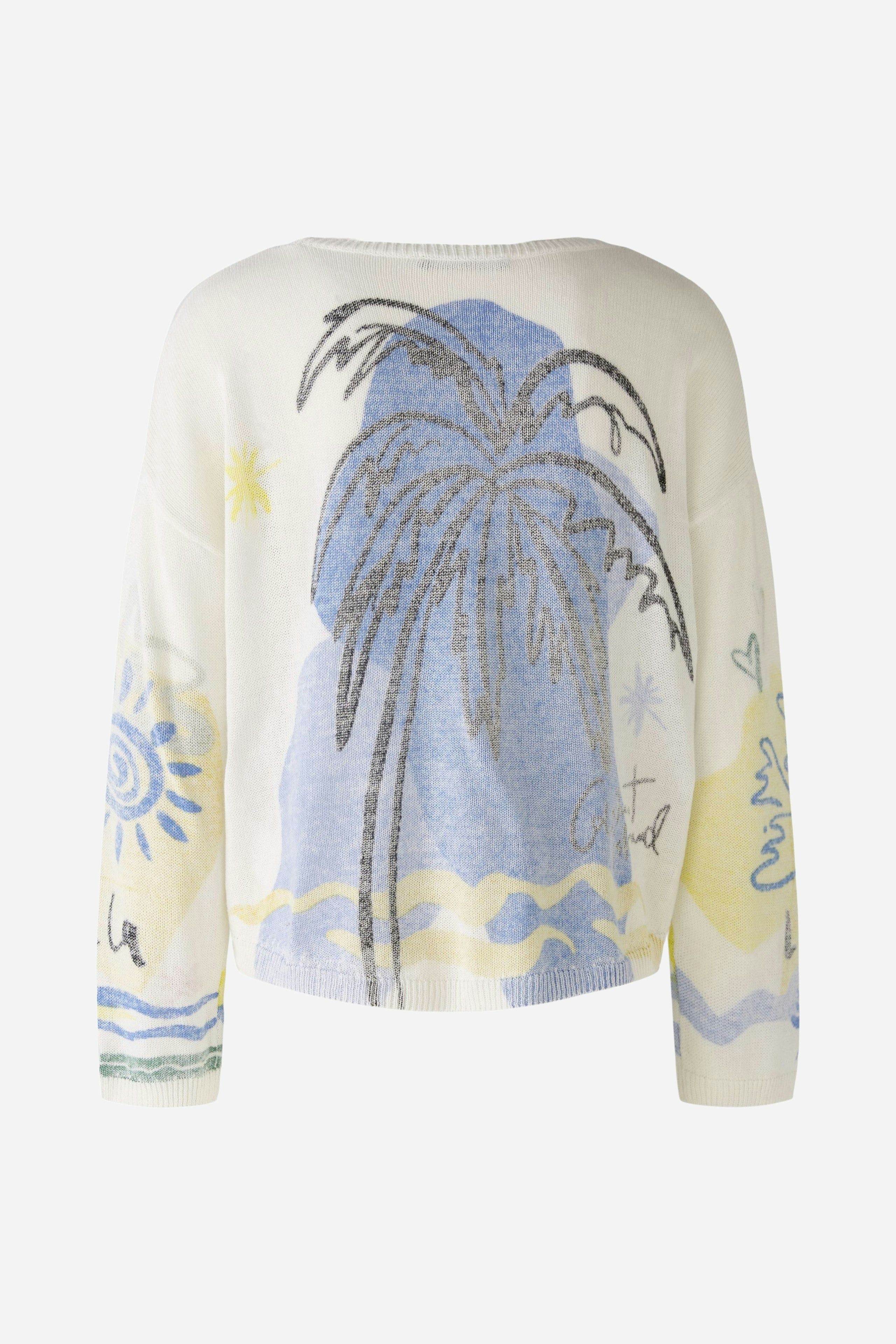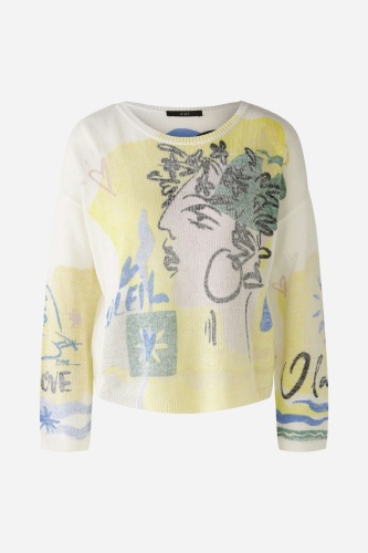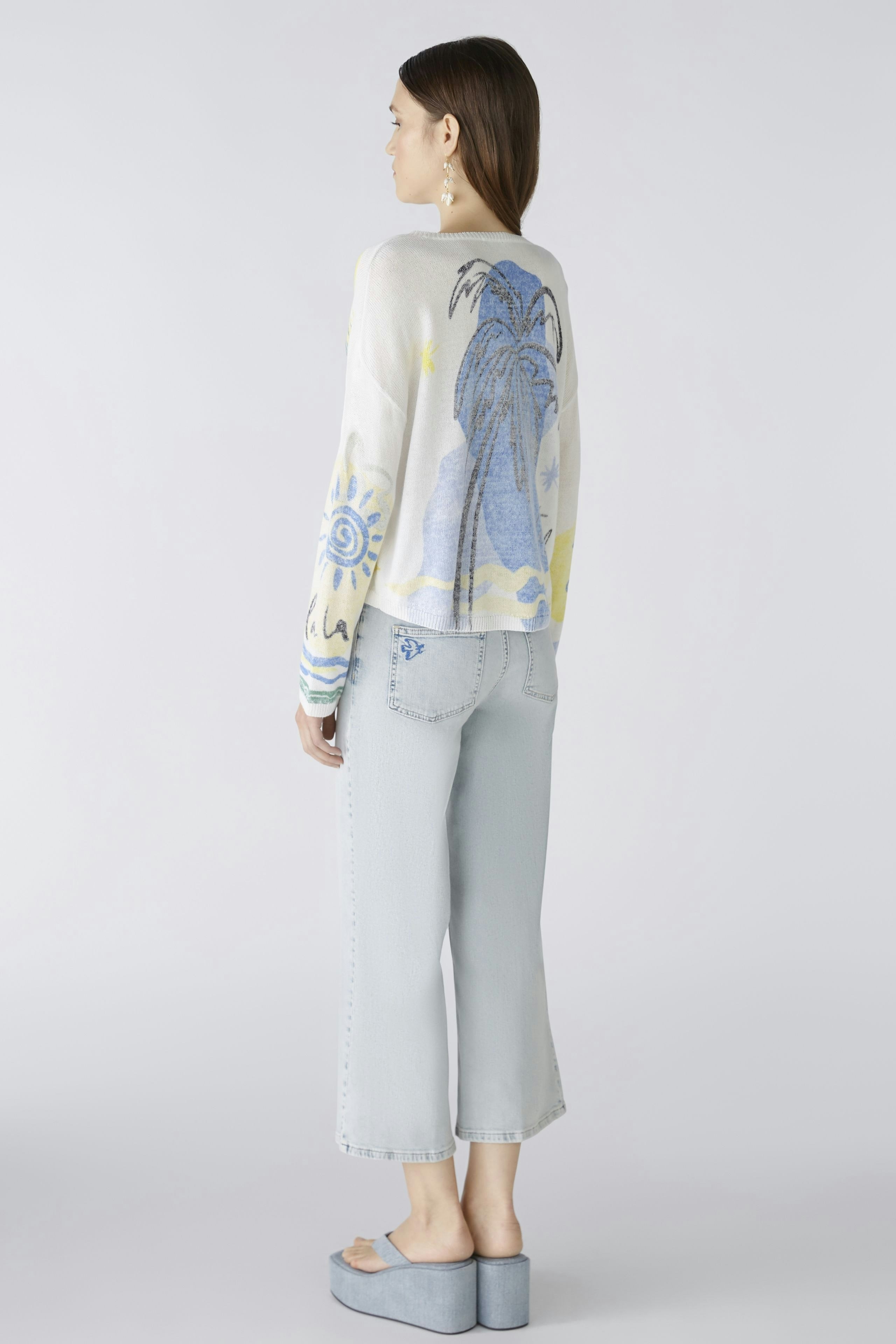 Свитер повседневного кроя полностью напечатан изнутри - благодаря этому цвета кажутся особенно мягкими - наши дизайнеры тщательно прорисовали мотив принта вручную! разные принты спереди и сзади. Чистый мерсеризованный хлопок, гладкий трикотаж, с принтом на внутренней стороне. Свободного покроя, стандартной длины, слегка удлиненной сзади. Женственный круглый вырез с небольшой ребристостью. Вырез на плече, свободно ниспадает на длинные рукава. Подол рукава и ребристый край усилены эластичной нитью. Длина для размера 42: 58 см.