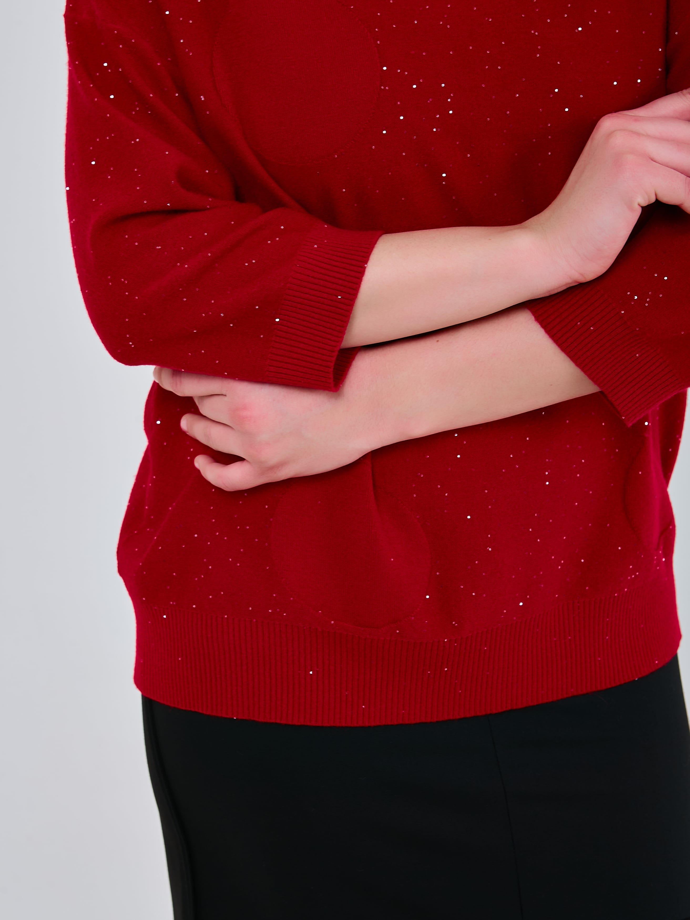 Базовый джемпер трендового оттенка красного, деликатно украшенный микропаетками.Осень-Зима'25/26. Капсула "Алые Паруса"