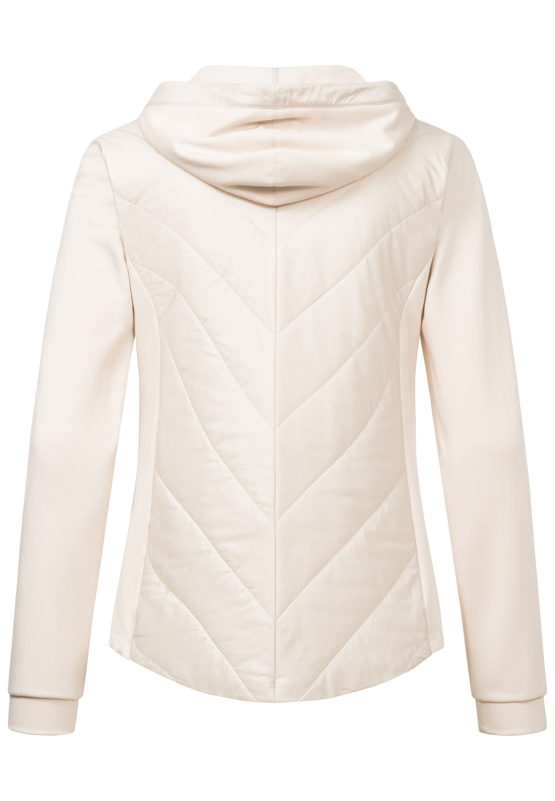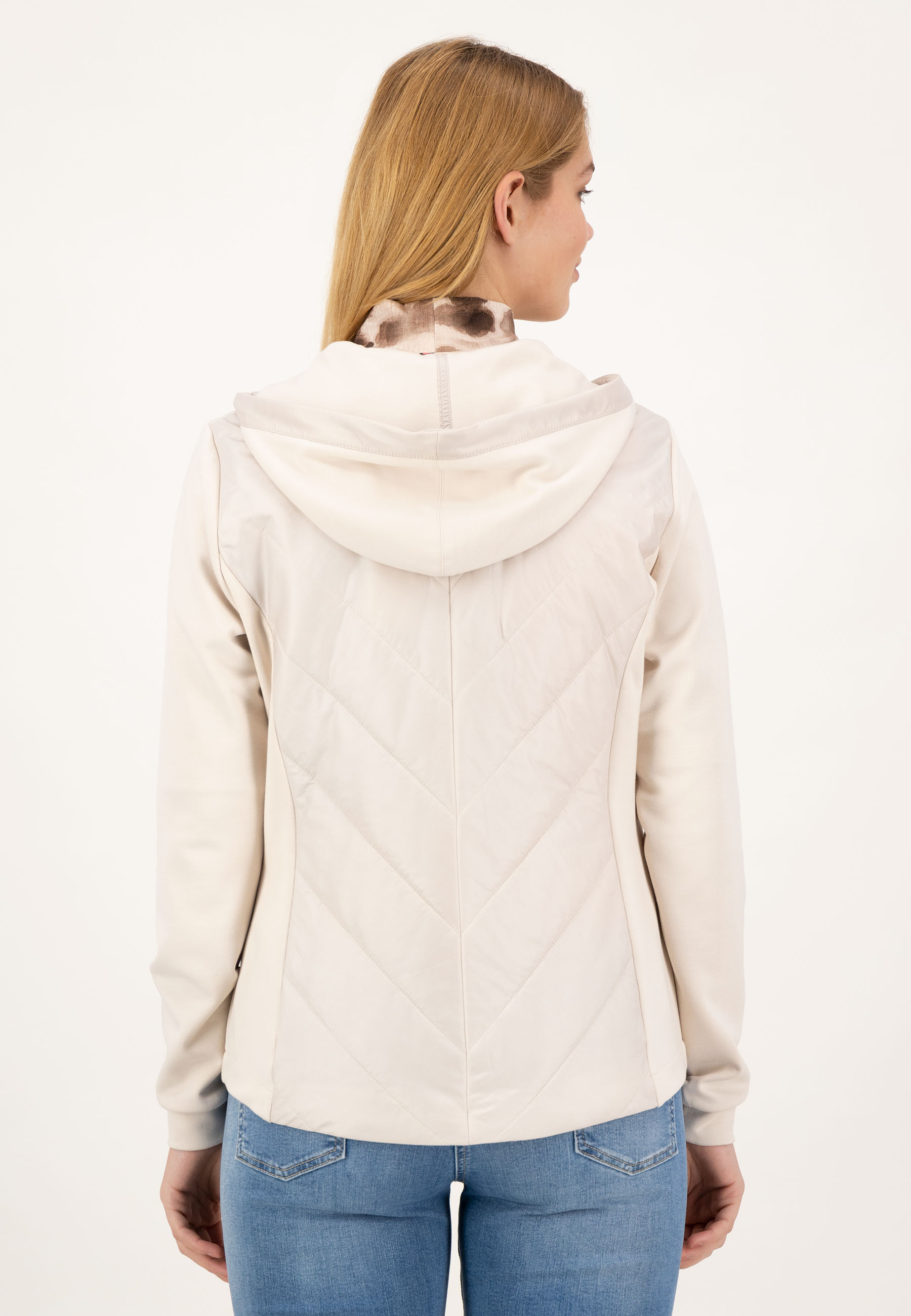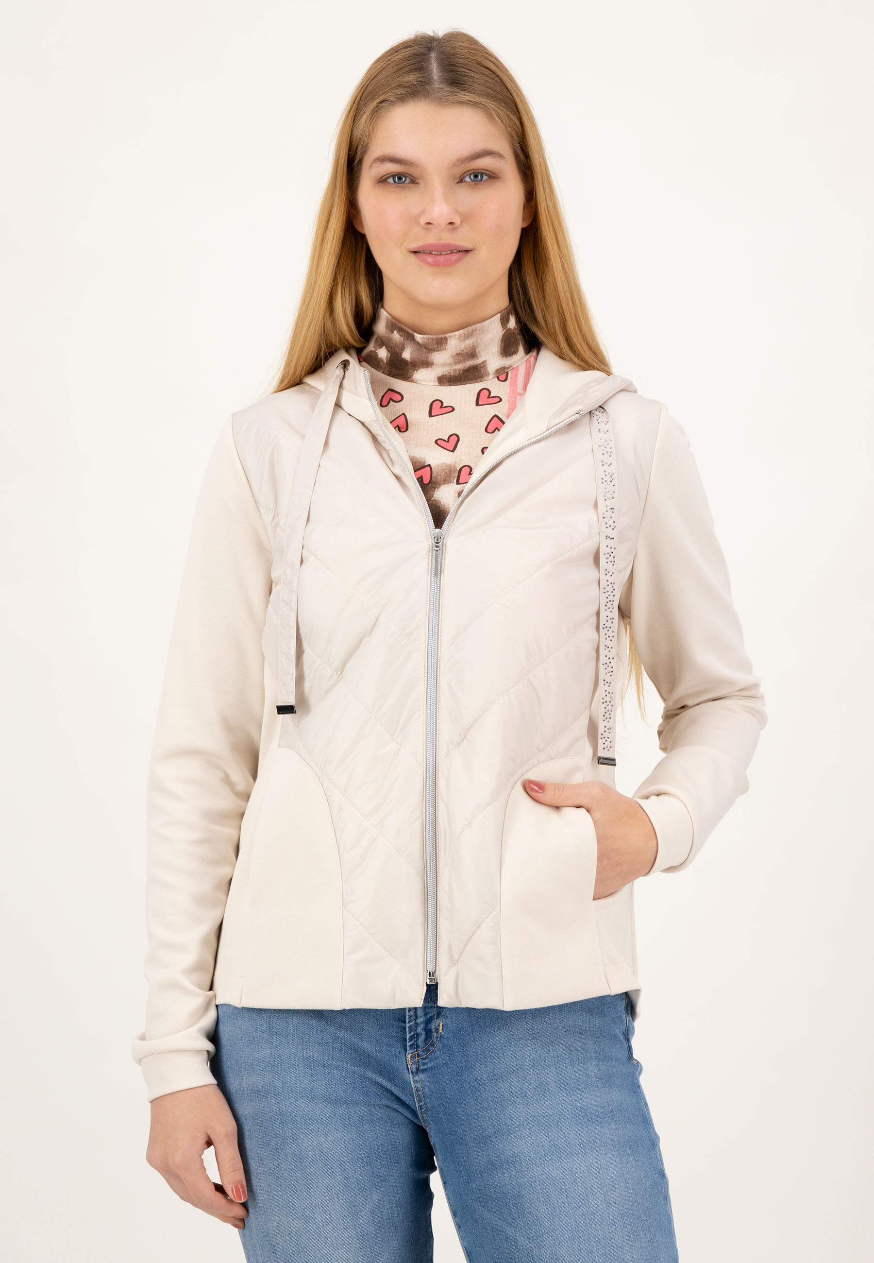 На сайте указаны российские размеры. Толстовка из смеси материалов привлекает внимание игривыми деталями, такими как атласная лента с блестящей отделкой вместо классического шнурка на капюшоне. Слегка блестящий вид стеганого материала искусно подобран на туннеле капюшона. С толстовкой каждый гардероб дополняется универсальным компаньоном на каждый день. Будь то центральная изюминка образа или завершение модного многослойного образа: возможности разнообразны. Наша модель ростом 177 см. Измерения для 44 размера: Окружность груди: 101 см Талия: 93 см Ширина бедер: 110 см Длина по спинке: 64 см Длина рукава: 62 см