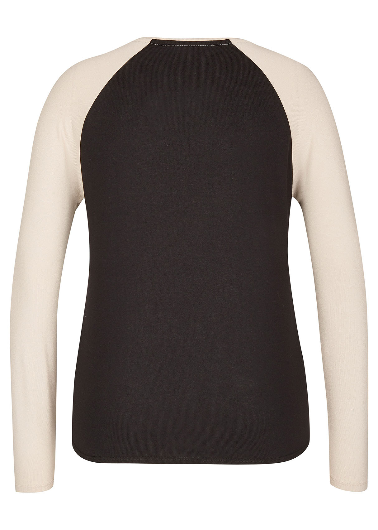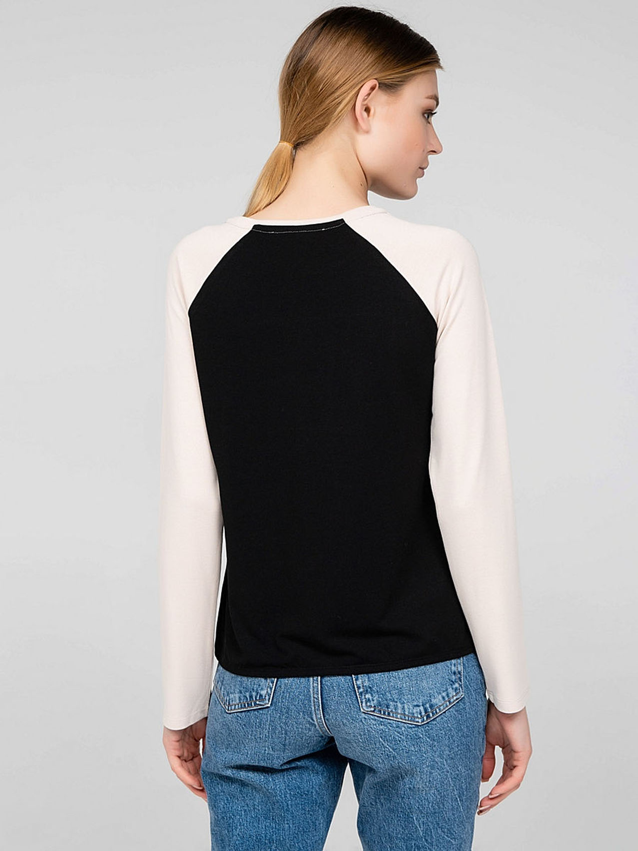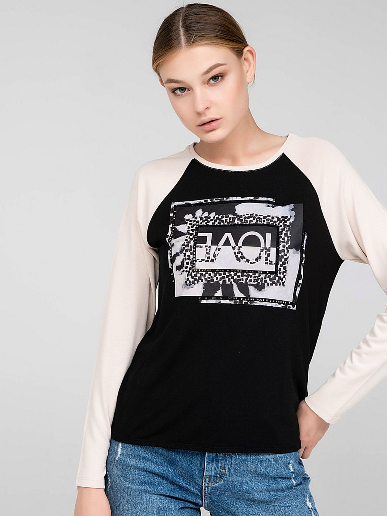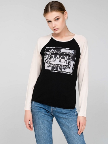 Джемпер с контрастным принтом. Полуприлегающий силуэт, круглый вырез горловины, длинные рукава реглан. Приятный к телу материал из смеси вискозы, полиэстера и эластана.