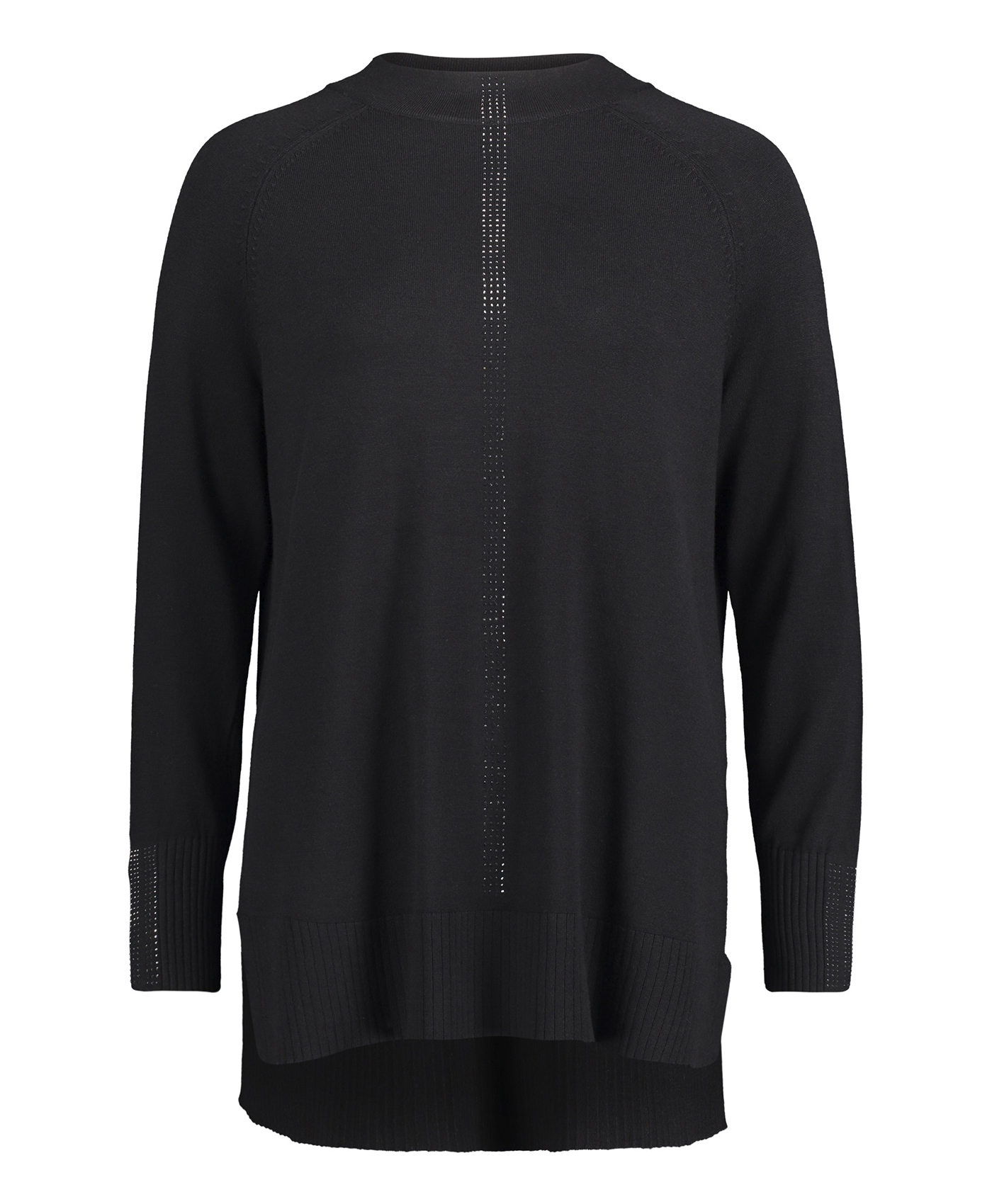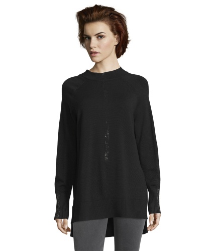 Этот джемпер смотрится одновременно непринужденно и элегантно. Слегка прилегающий силуэт, вырез горловины "воронка", длинные рукава реглан, удлиненная спинка изделия. Декор стразами на переде изделия и рукавах создает нарядный образ. Материал из вискозной смеси приятен к телу и обеспечивает комфорт. В сочетании с брюками этот джемпер создает стильный современный образ.