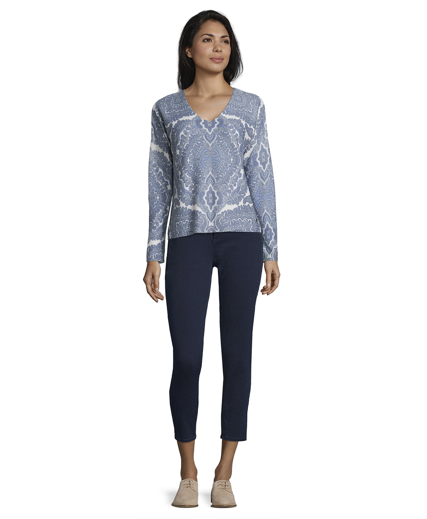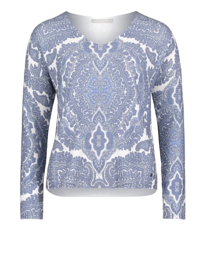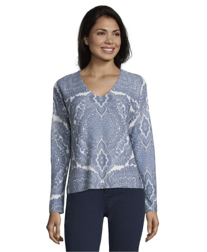 Этот женственный джемпер придаст изюминку в любой образ! Прямой покрой, V-образный вырез, длинные рукава. Модный принт с этническими мотивами. Джемпер отлично смотрится как с брюками, так и с юбкой.