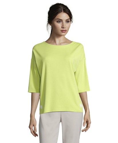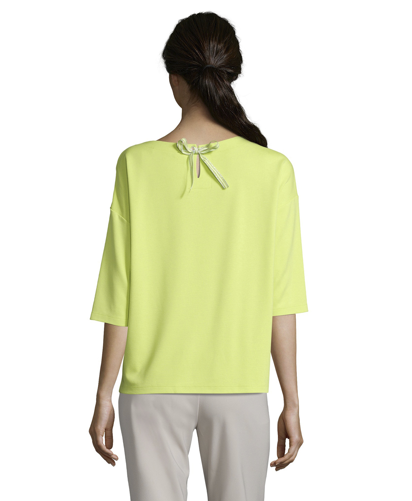 Универсальная модель - однотонный джемпер прямого покроя. Круглый вырез горловины с элегантными завязками на спинке, рукава 1/2 со спущенным плечом. Декоративные пуговицы по бокам. Материал из вискозной смеси приятен к телу и обеспечивает комфорт. С этой лаконичной моделью вы можете создать множество стильных комплектов одежды.