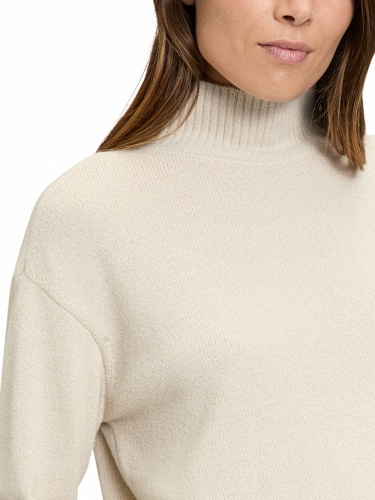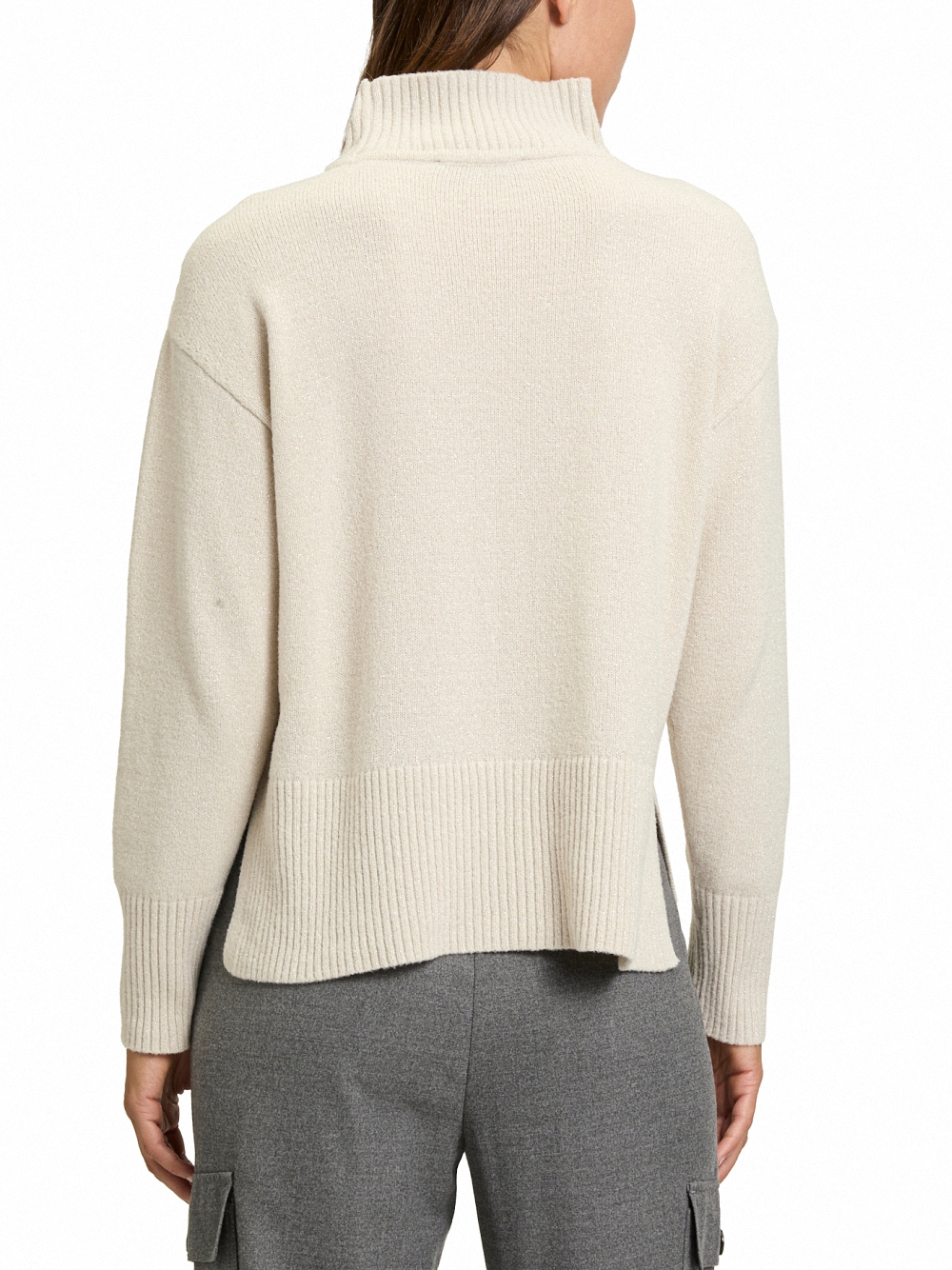 Классический свитер молочного цвета с высоким горлом и выточками по бокам. Подойдет как к классическому так и к свободному стилю
