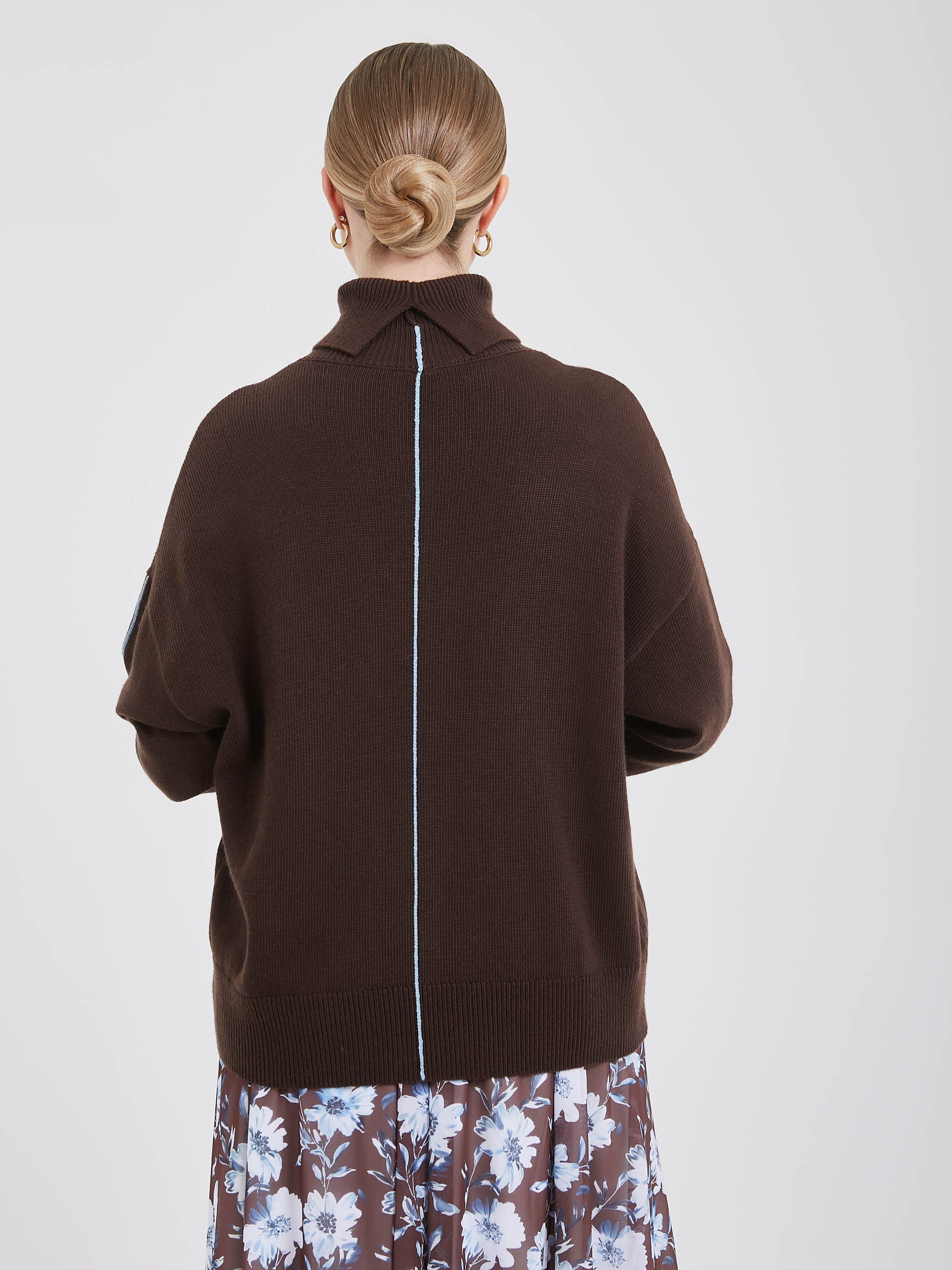 Уютный и мягкий джемпер с высоким горлом - воплощение современной умной моды. В его составе присутствует инновационная анти-пилинг нить, позволяющая сохранить высокие тактильные свойства и прочность материала. Среди деталей выделяются золотые пуговицы на манжетах, вертикальные прострочки по осям изделия контрастного голубого цвета и небольшие разрезы по манжетам и задней части горловины. Такой джемпер прекрасно подчеркивает особенности вашей фигуры, создавая неповторимый и привлекательный образ. Осень-Зима'25/26. Капсула "Вино из одуванчиков"