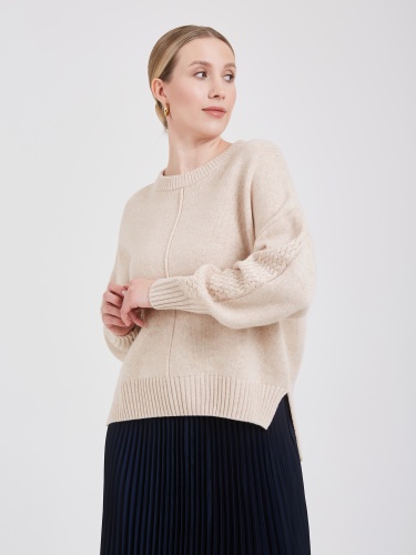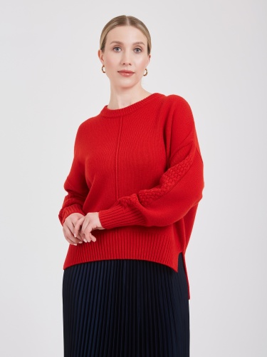 Джемпер выполнен из натурального состава с содержанием 50% шерсти и инновационной анти-пилинговой нитью. Это теплый и универсальный вариант верхней одежды, за которым легко ухаживать и приятно носить каждый день. Натуральный состав обеспечивает комфорт, а специальная технология предотвращает образование катышков, продлевая срок службы изделия. Универсальная модель идеально впишется в ваш гардероб, дополнив любой образ. Осень-Зима'25/26. Капсула "Алые Паруса"
