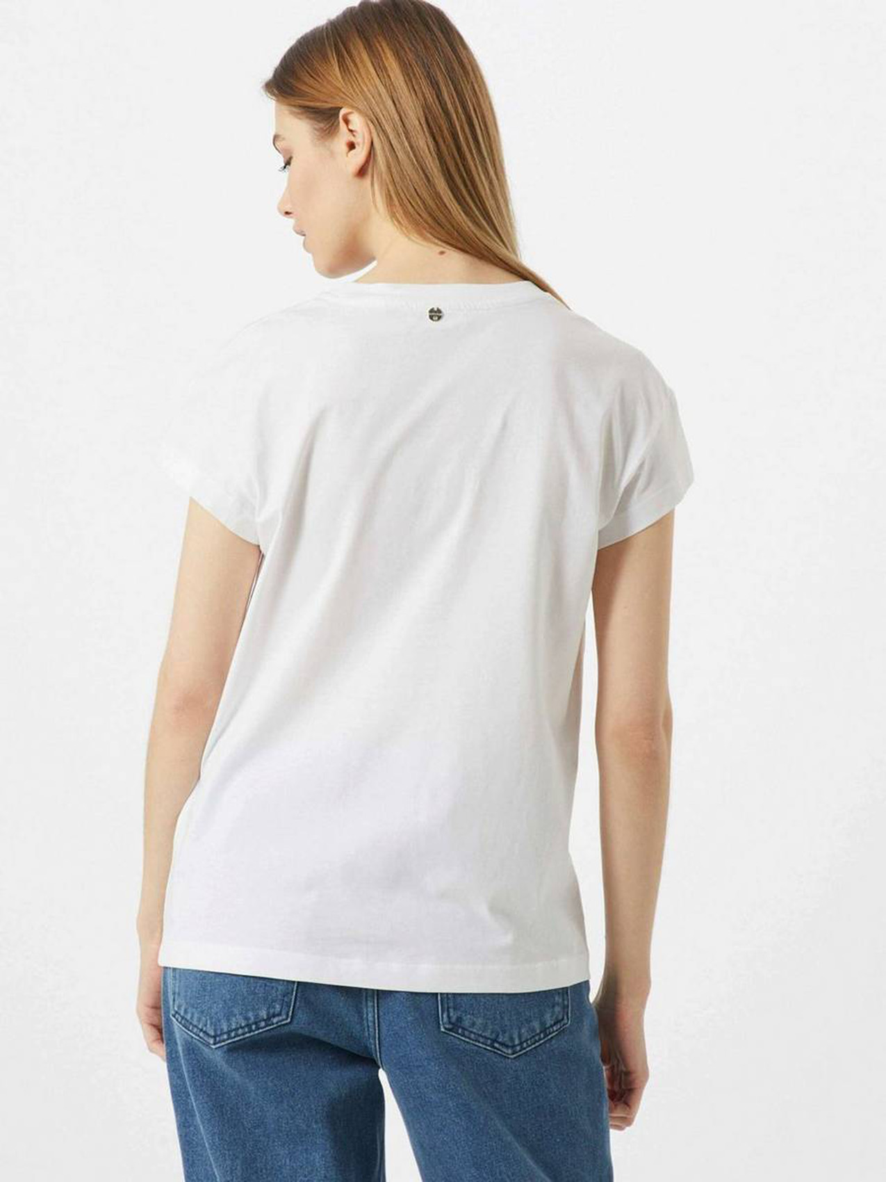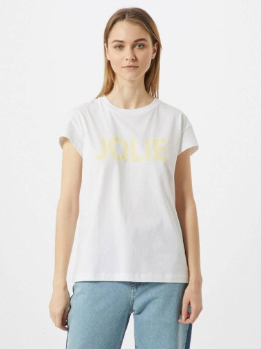 Базовая белая футболка с неоновым акцентом - надписью на груди. Хлопковый материал, прямой покрой и короткий рукав со спущенным плечом обеспечивают комфорт и создают непринужденный образ.