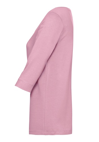 Простая футболка прямого покроя - обязательный элемент базового гардероба. Приятный к телу материал из смеси хлопка, модала и эластана обеспечит комфорт и идеальную посадку. Рукав 2/3 и широкая круглая горловина придают модели непринужденный вид. Эта футболка подходит как для офиса, так и для прогулки.