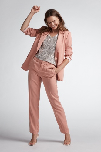 Элегантная приталенная футболка подчеркивает достоинства фигуры. V-образный вырез горловины, короткие рукава. Ткань с пайетками придает гламурный блеск. Эта футболка освежает образ, придавая праздничное настроение любому комплекту одежды.