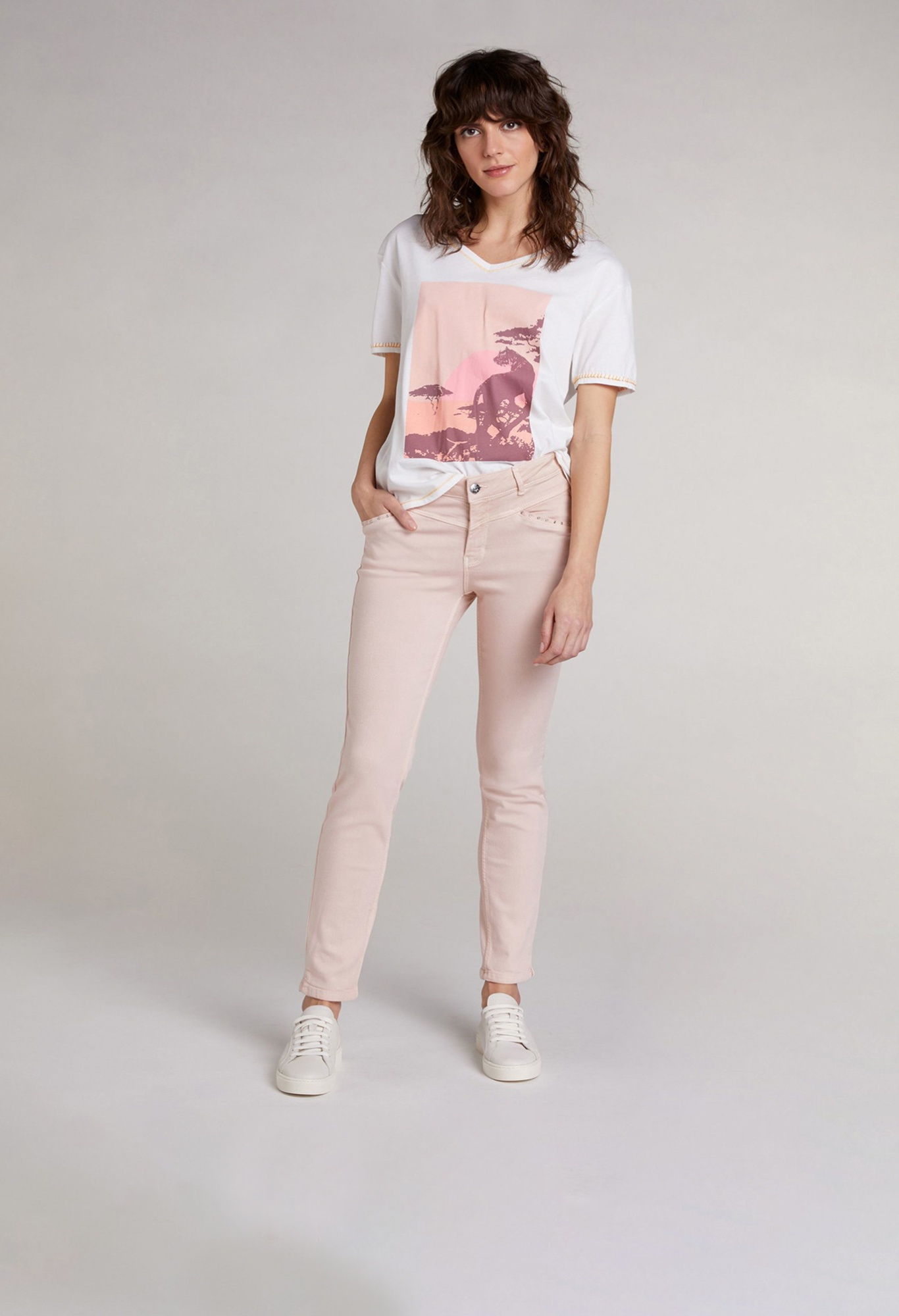 Белая футболка с анималистичным дизайном может быть самостоятельным верхом или надеваться под пиджак.V-образный вырез. Короткий втачной рукав, спущенная линия плеч.