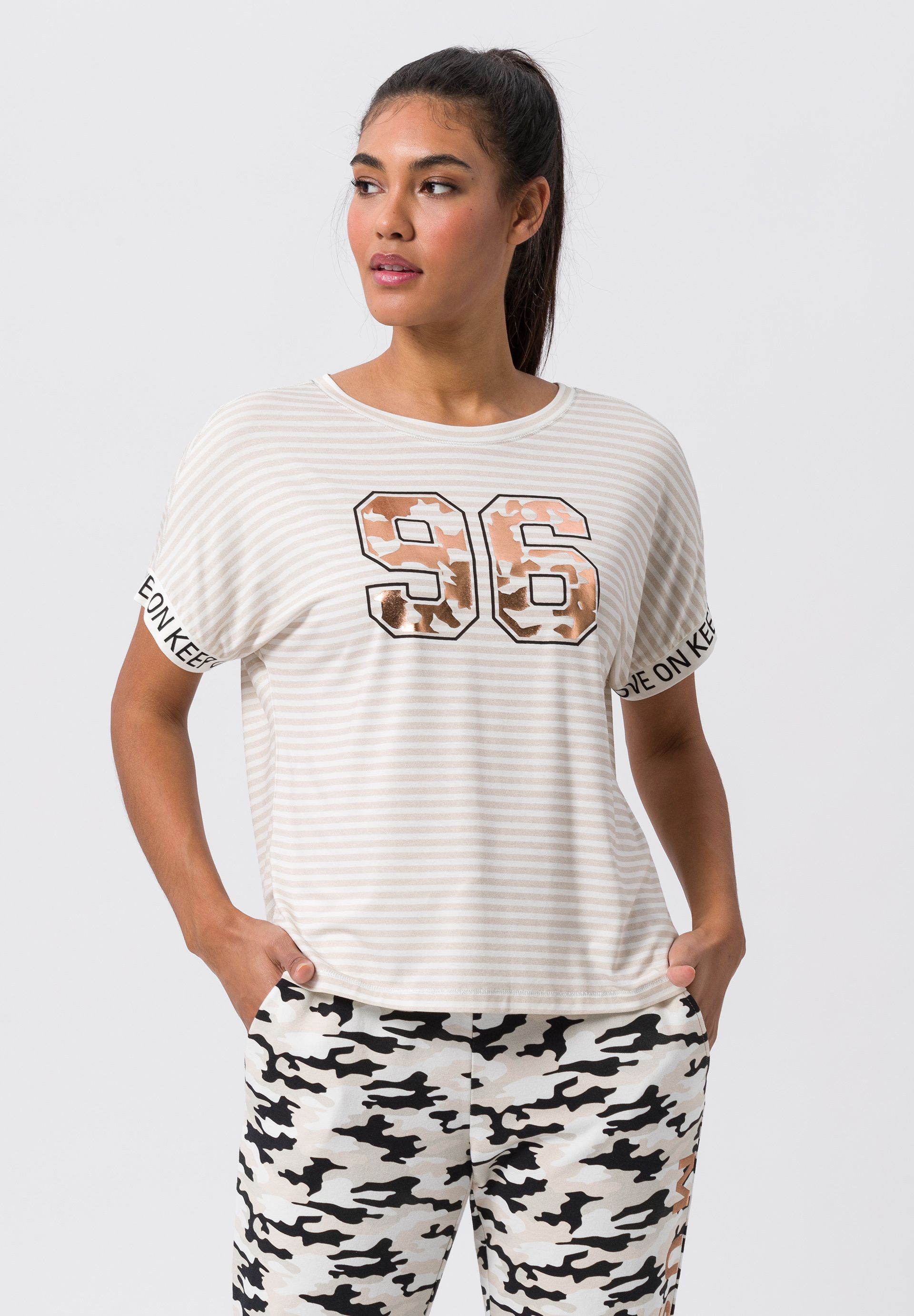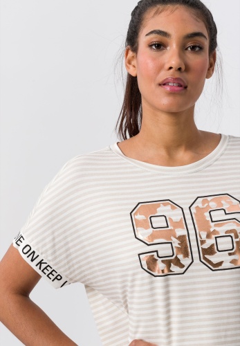 Футболка с большим блестящим акцентом в виде цифр.