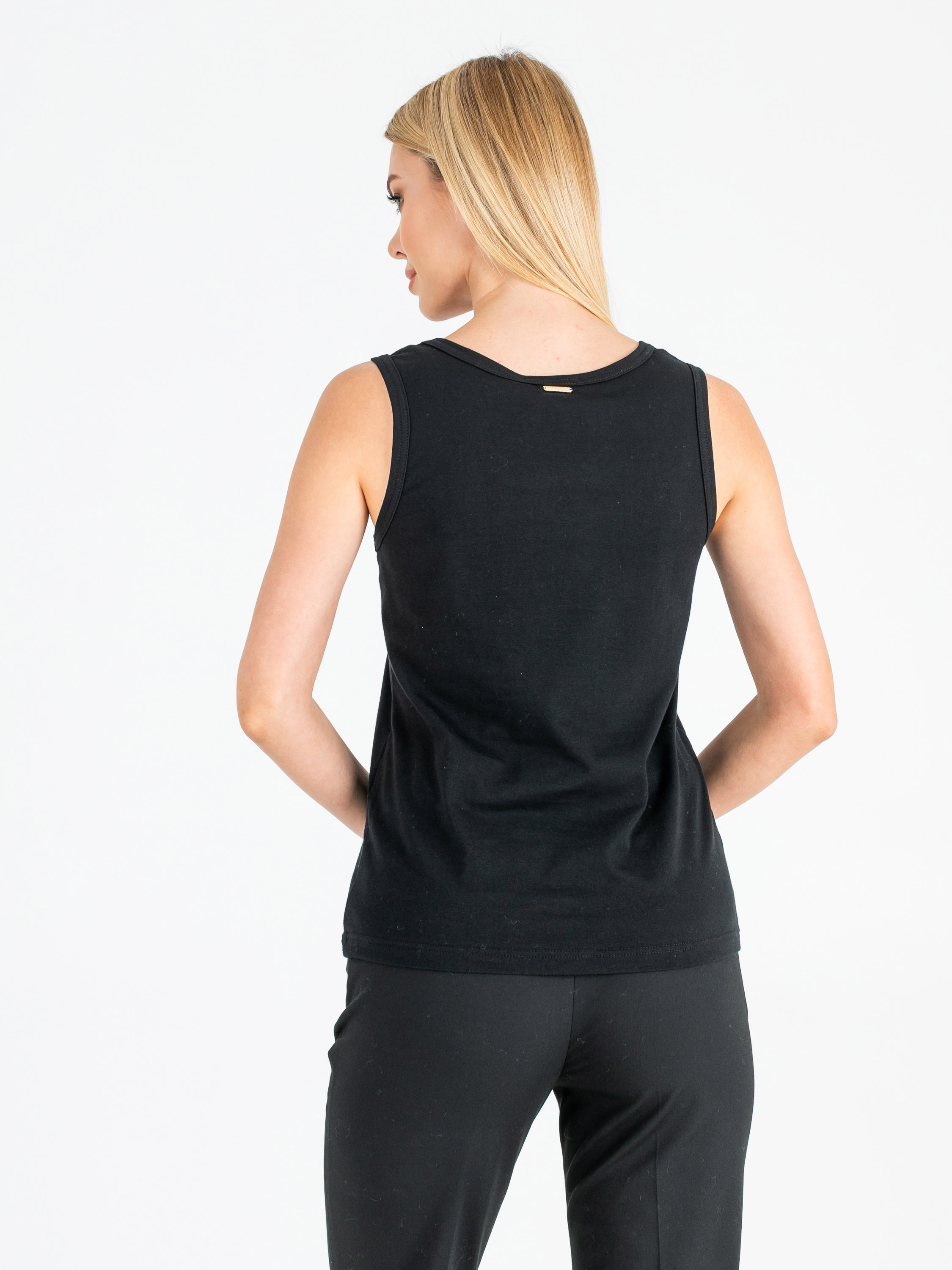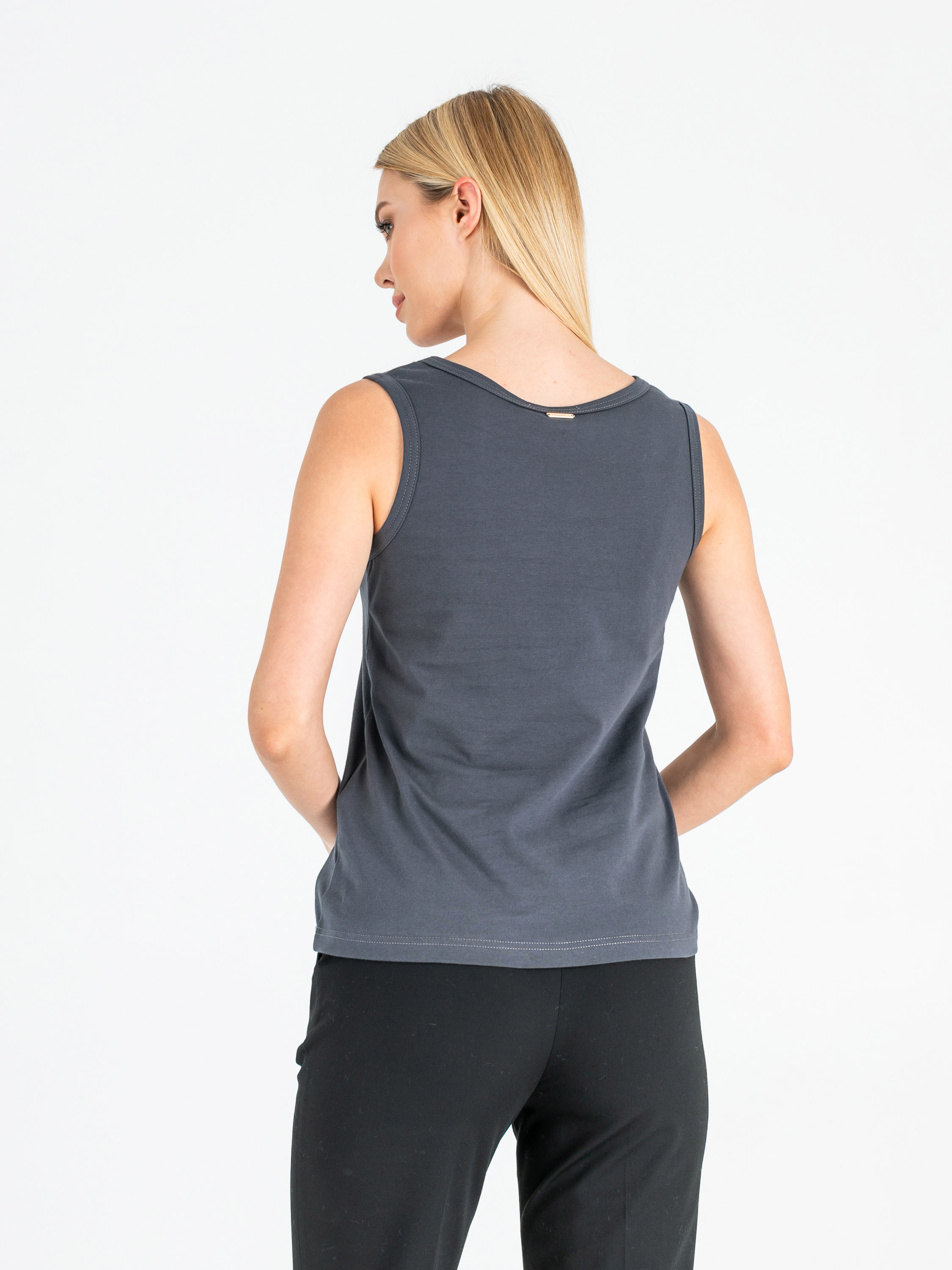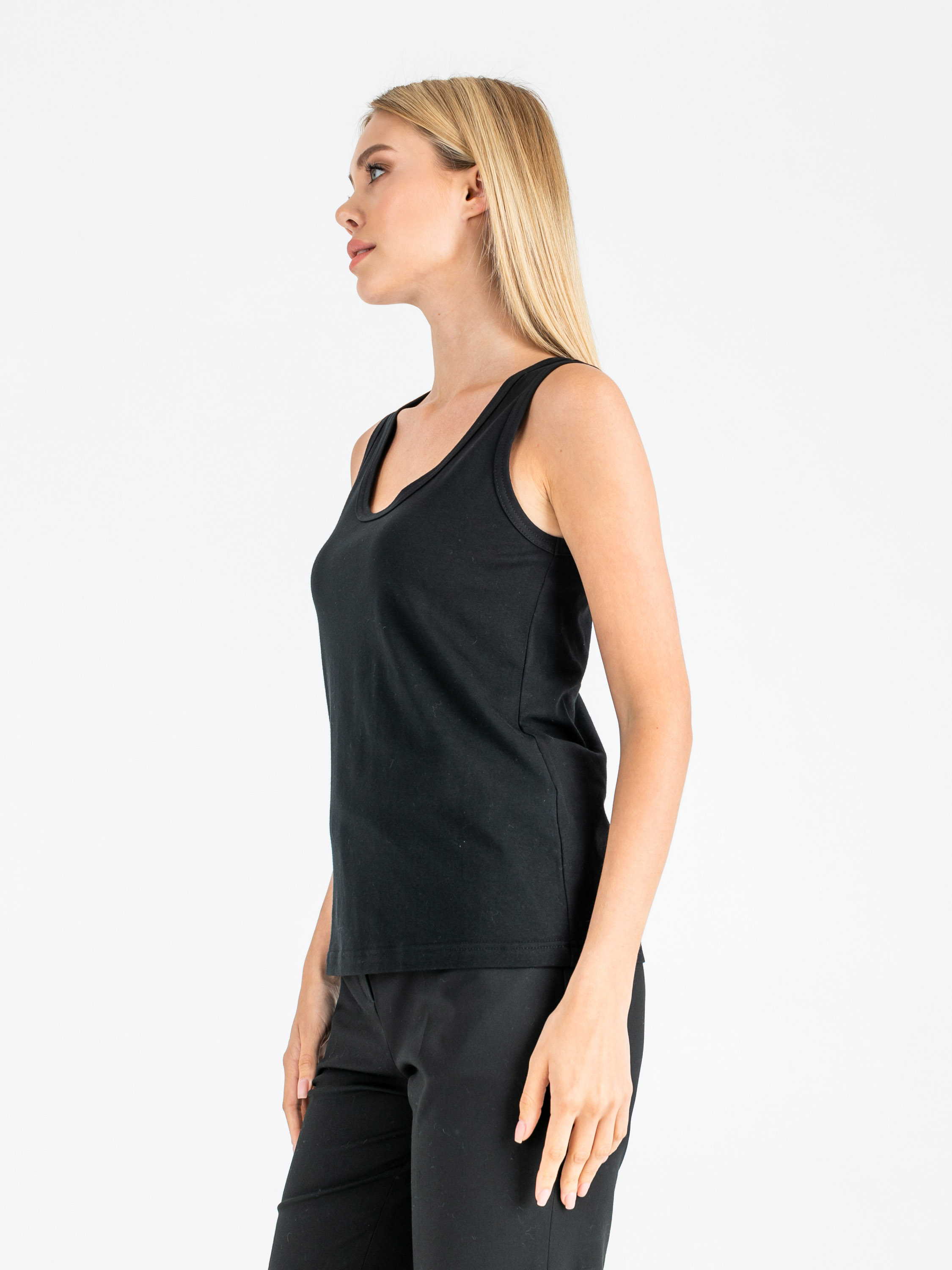 Классический слегка приталенный топ на широких лямках. Параметры модели: 86-61-91 см Рост 177 см