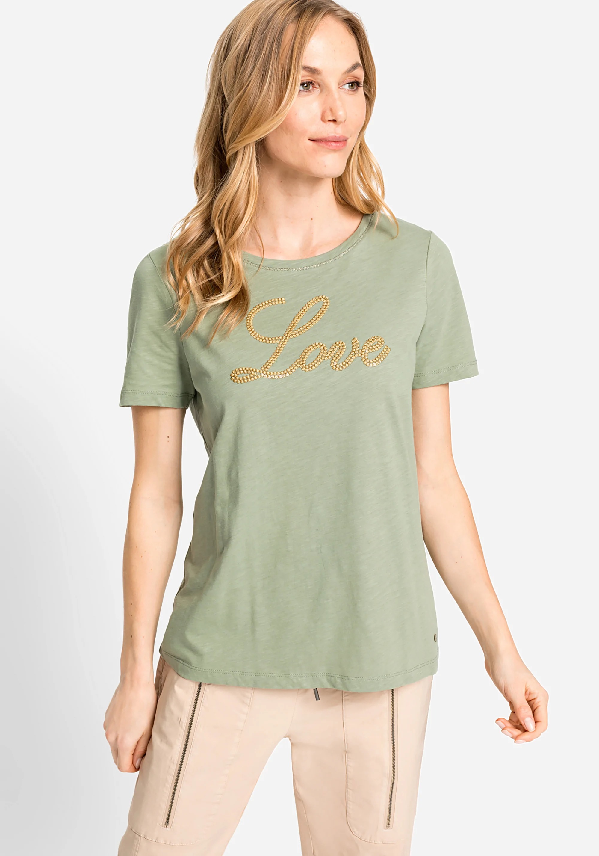 На сайте указаны российские размеры. Красивая базовая футболка с надписью «love» по центру, украшеннае сочетанием пайеток и вышивки. Отделка из люрекса, прямой крой и ткань из 100 % хлопка обеспечивают комфорт и удобство в носке.