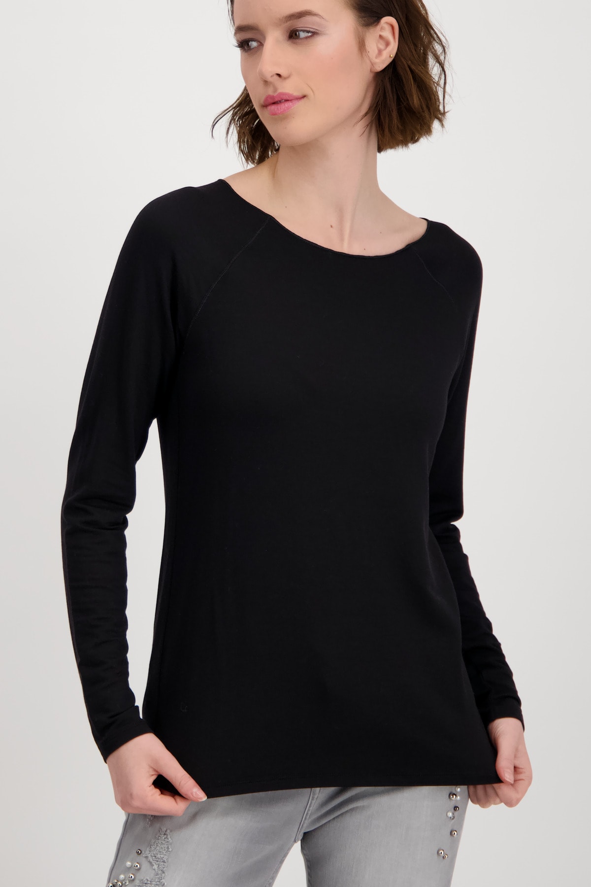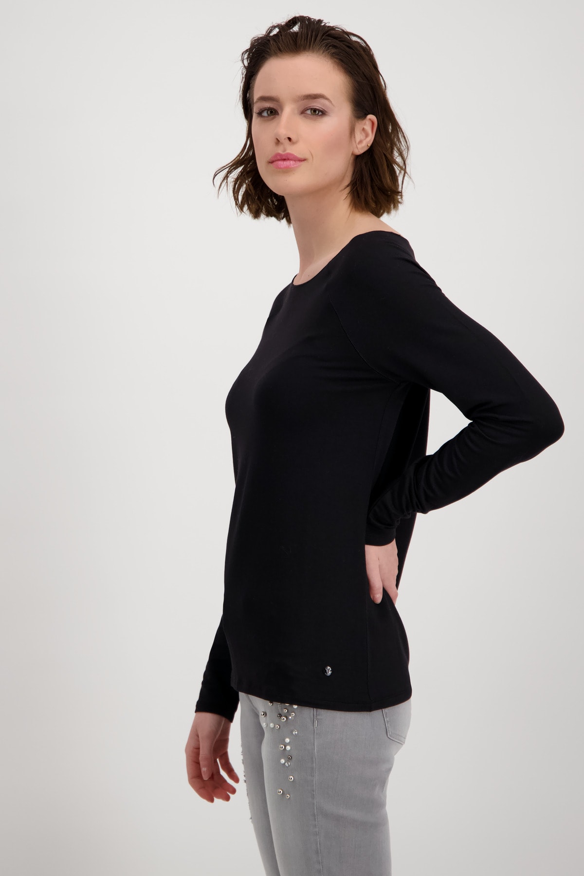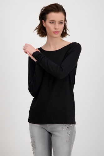 На сайте указаны российские размеры. Базовая футболка с длинными рукавами и круглым вырезом. Универсальная комбинируемая базовая рубашка монари с длинными рукавами. Прямой фасон, круглый вырез горловины и рукава реглан с блестящими оверлочными швами. Сочетание вискозы и модала, а также небольшого количества стрейча также обещает очень мягкое ощущение и высокий комфорт при ношении. Модель ростом 178 см Длина спины 44 размера составляет 64 см.
