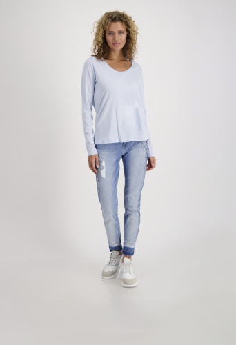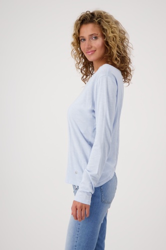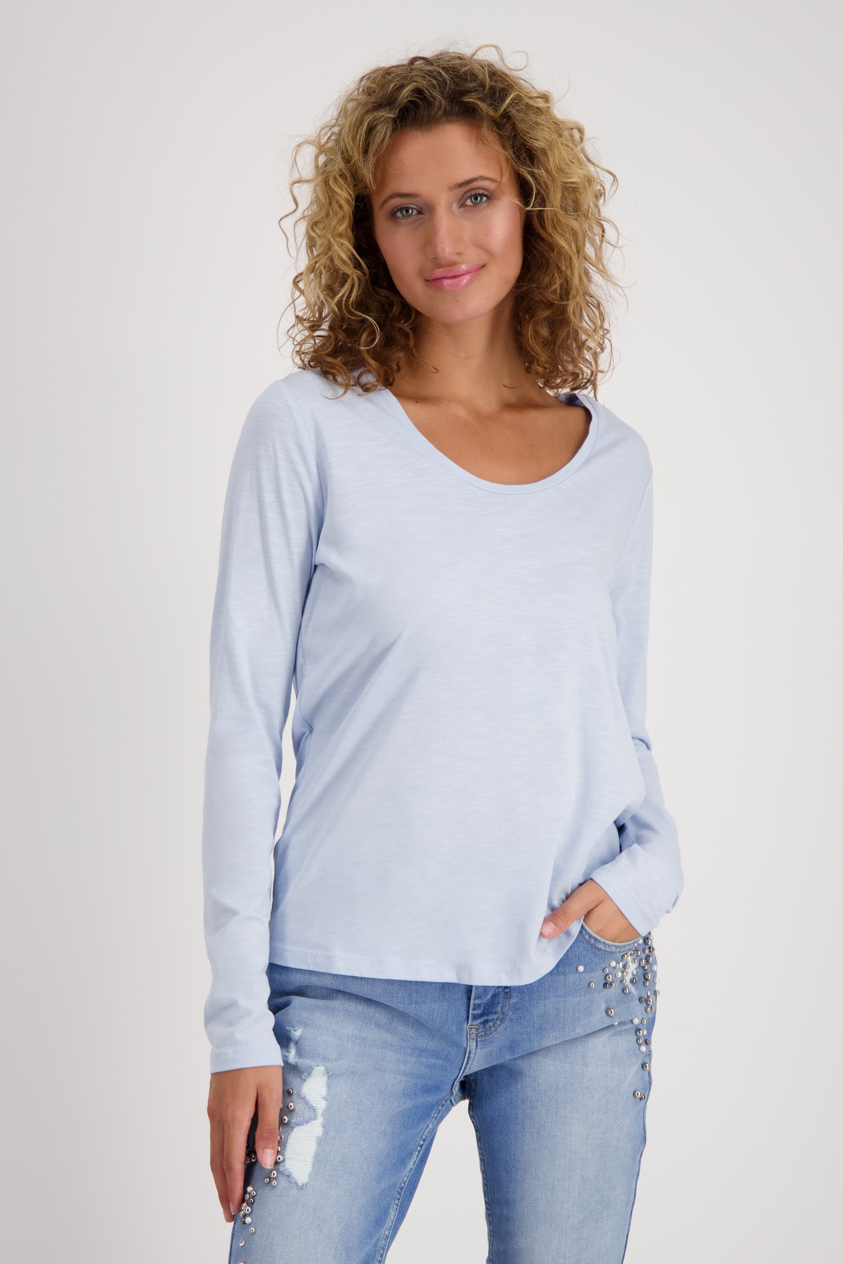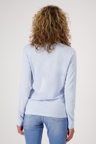 На сайте указаны российские размеры. Легкая базовая рубашка с длинными рукавами и круглым вырезом. Удобная посадка гарантирована благодаря прямому крою с круглым вырезом и качественному материалу из хлопка и модала. Просто мечтательная базовая вещь на каждый день. Рост модели: 176 см. Длина спины 44 размера 64 см.