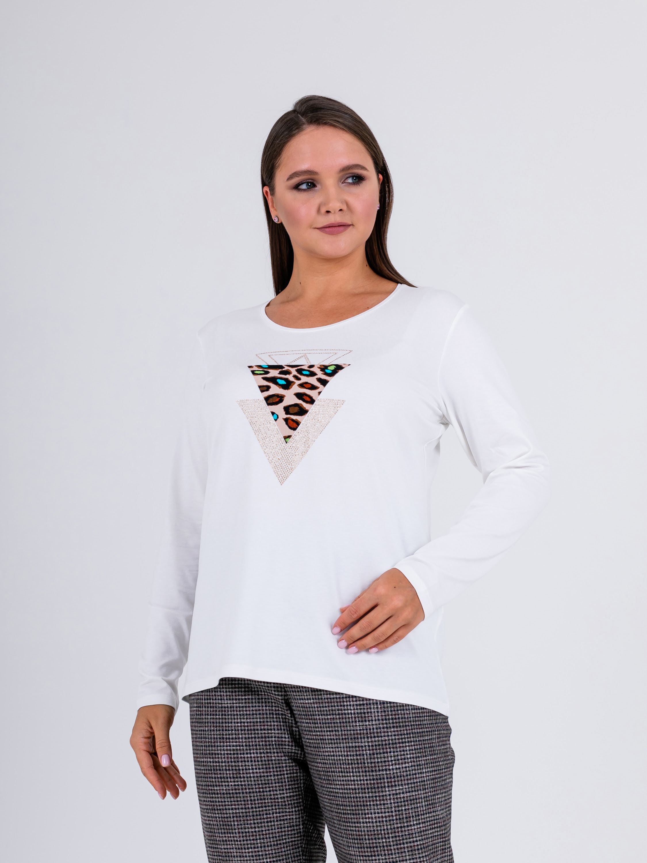 На сайте указаны российские размеры. Ткань: 92% вискоза, 8% эластан. Крой: джемпер из мягкой эластичной вискозы прямого силуэта с круглым вырезом и длинным рукавом. Базовая модель, которая хорошо подходит женщинам разных типов фигур, включая нестандартные. Имеет достаточную длину, прикрывает область живота, не поднимается вверх при ходьбе. Отделка: леопардовый принт, геометрия и россыпь переливающихся страз – нет, не слишком. Яркие детали создают яркое настроение, а это как раз то, что нужно в череде серых будней. Идеальная база для однотонного низа, без принтов и паттернов. Выберите юбку, джинсы или брюки в соответствующих разделах на нашем сайте.