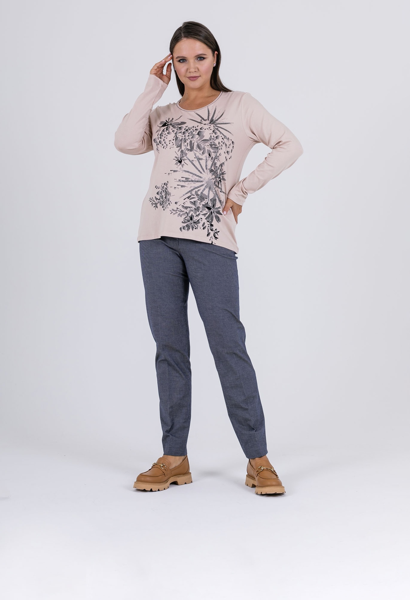 На сайте указаны российские размеры. Ткань: 92% вискоза, 8% эластан. Крой: классическая удлиненная модель свободного силуэта с длинными рукавами и круглым горлом. Приятный гладкий материал позволяет телу дышать, а вам ощущать комфорт и тепло. Универсальная модель, подходящая женщинам с разным типом фигур. Отделка: сочетание нежного розового и серого – одно из самых удачных и актуальных. Вырез джемпера украшает контрастный зигзаг, который приковывает внимание к деталям. В ассортименте Stern вы найдете десятки вариантов для создания ярких образов с этим джемпером. Загляните в разделы брюк, юбок и джинсов на нашем сайте.