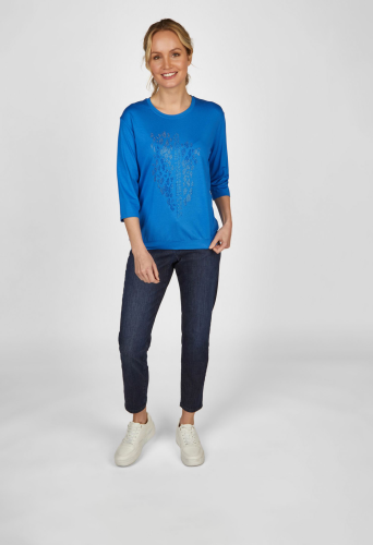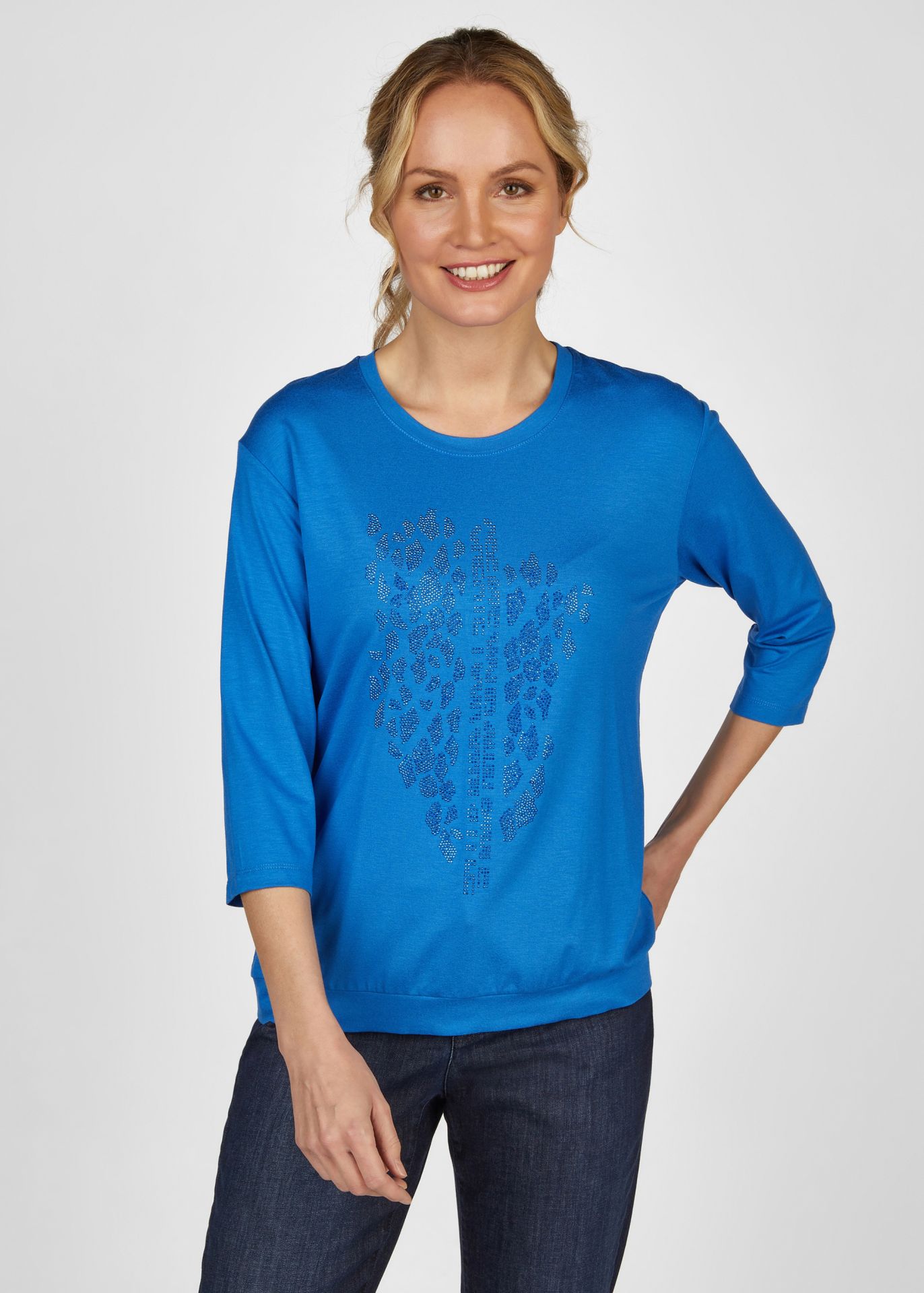 Универсальная футболка однотонного цвета. Особое внимание привлекает высококачественный блестящий мотив, который придает футболке тонкий, но элегантный вид. Идеально подходит для любого случая, будь то нарядный или повседневный, и прекрасно сочетается с другой одеждой.