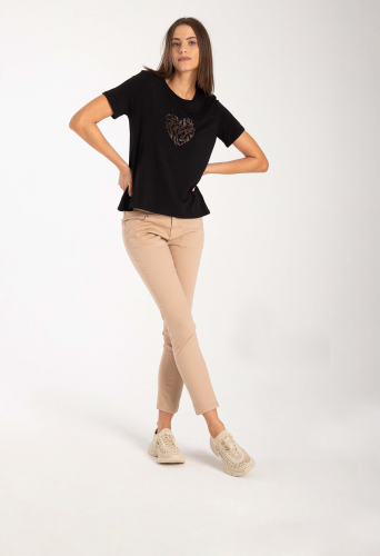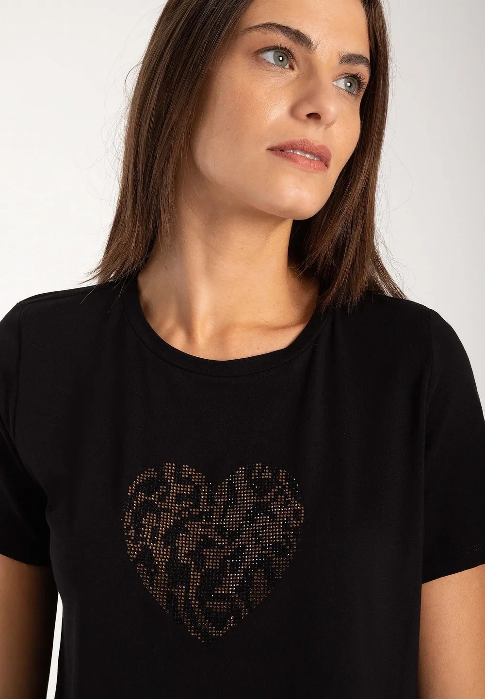 Привлекательная футболка MORE & MORE со сверкающим сердечком из стразов спереди привлекает внимание и одинаково хорошо смотрится с выцветшими джинсами, струящейся тюлевой юбкой или классическими деловыми брюками. Gрямая, свободная форма. круглый вырез и короткие рукава. Сзади немного длиннее, чем спереди. Длина по размеру 42 = 60 см