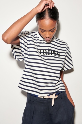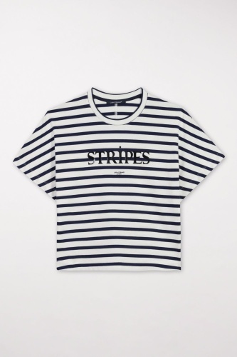 Укороченная хлопковая футболка свободного кроя с круглым вырезом и рукавами «летучая мышь». Спереди имеется крупный принт с логотипом.