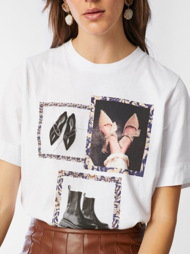 Белая футболка из 100% хлопка с оригинальным принтом в стиле fashion. Прямой крой универсален и подходит для любого типа фигуры. Втачной короткий рукав.
