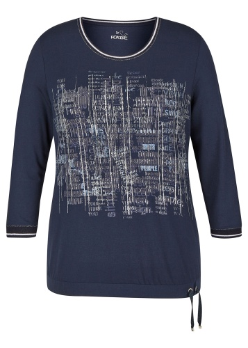 Футболка свободного покроя - необходимый элемент гардероба в стиле кэжуал. Круглый вырез горловины и втачные рукава 3/4 декорированы контрастной обтачкой с нитью люрекса. Завершает дизайн кулиска по низу изделия. Приятный к телу эластичный материал с вискозой и модалом обеспечивает комфорт в ношении.