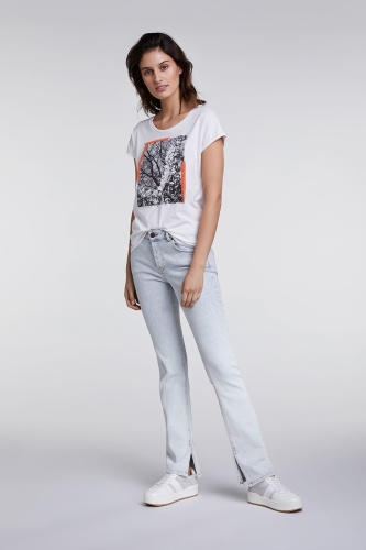 Футболка прямого силуэта - абсолютный тренд. Широкий круглый вырез горловины, короткие рукава. Принт с яркими акцентами привлекает внимание. Хлопковый материал приятен к телу и обеспечивает комфорт. Эта модель в стиле кэжуал обеспечивает создание современного демократичного образа.