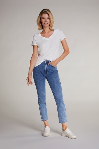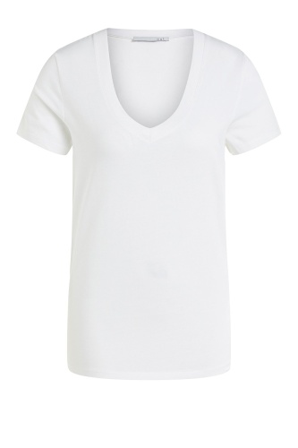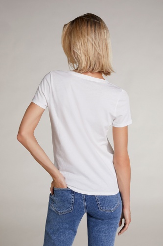 Базовая однотонная футболка сочетается с любыми вещами и является необходимым элементом современного гардероба. Прямой покрой, V-образный вырез горловины, короткие втачные рукава. Приятный к телу хлопковый материал обеспечивает комфорт в ношении.