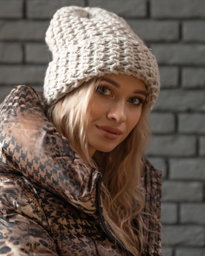 Шапка крупной вязки - отличное дополнение стильного образа в холодную погоду. Модель универсальна и подходит любому типу лица. Мягкий смесовый шерстяной материал обеспечивает сохранение тепла.