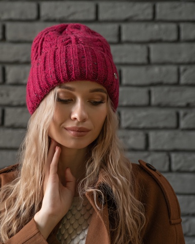 Шапка-бини с узором из кос - уютная вещь, завершающая модный образ. Интересные детали дизайна - нить с люрексом, придающая легкий блеск, и аккуратный металлический лейбл STERN. Модель универсальна и подходит любому типу лица, а разнообразие цветов позволяет подобрать то, что нужно именно вам. Мягкий смесовый шерстяной материал обеспечивает сохранение тепла.
