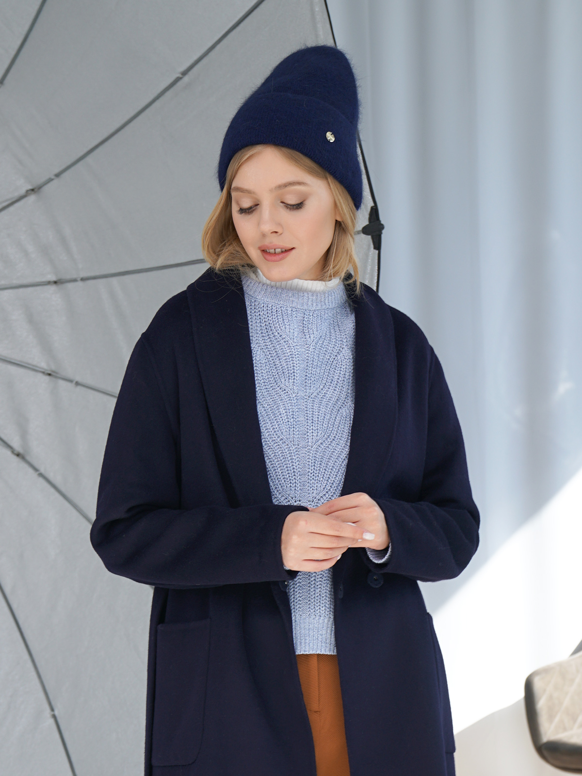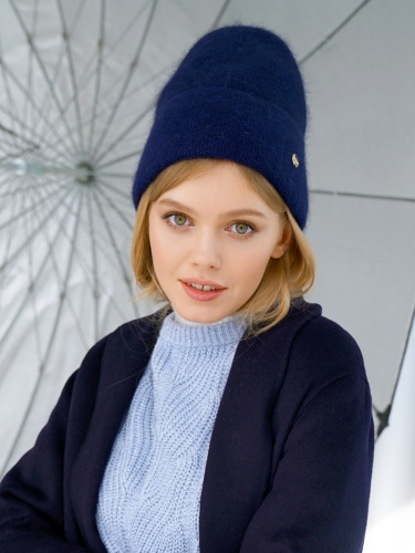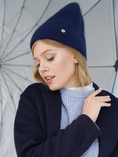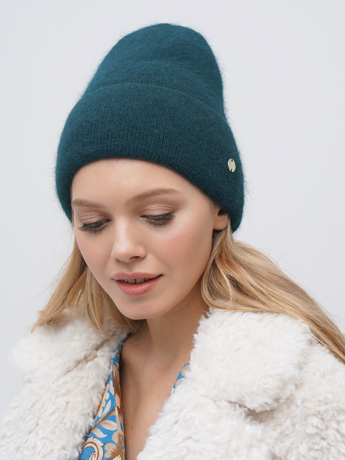 Однотонная шапка-бини из смесовой шерсти ангоры хорошо сохраняет тепло. Трендовая форма, стильный дизайн – шапка дополнит повседневный образ в холодную погоду. Шапка представлена в чернильно-синем и изумрудном оттенке.