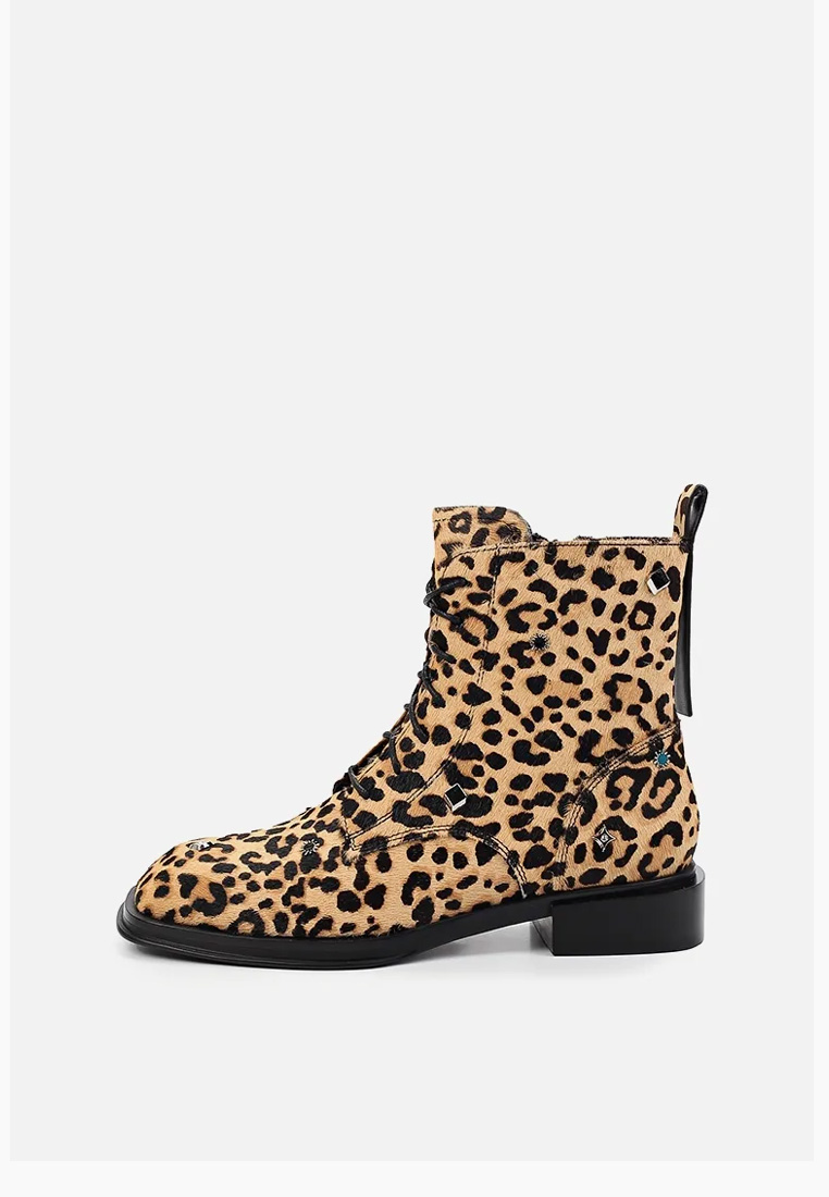 Демисезонные ботинки бренда премиум класса AIDINI леопардового цвета. Пара выполнена из натуральной кожи, утеплена байкой. Ботинки украшены металлическим декором.
