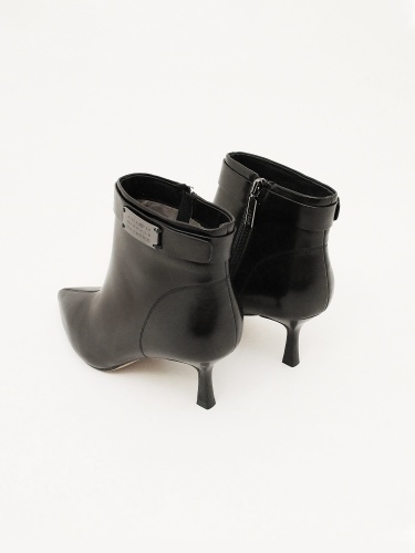 Женские ботильоны MYSET из натуральной кожи на высоком каблуке. Острый нос и изящный каблук добавляют модели женственности и изысканности. Утепленная подкладка из байки позволит комфортно себя чувствовать в прохладную погоду. На верхней части изделия на хлястике декор в виде металической пластинки.